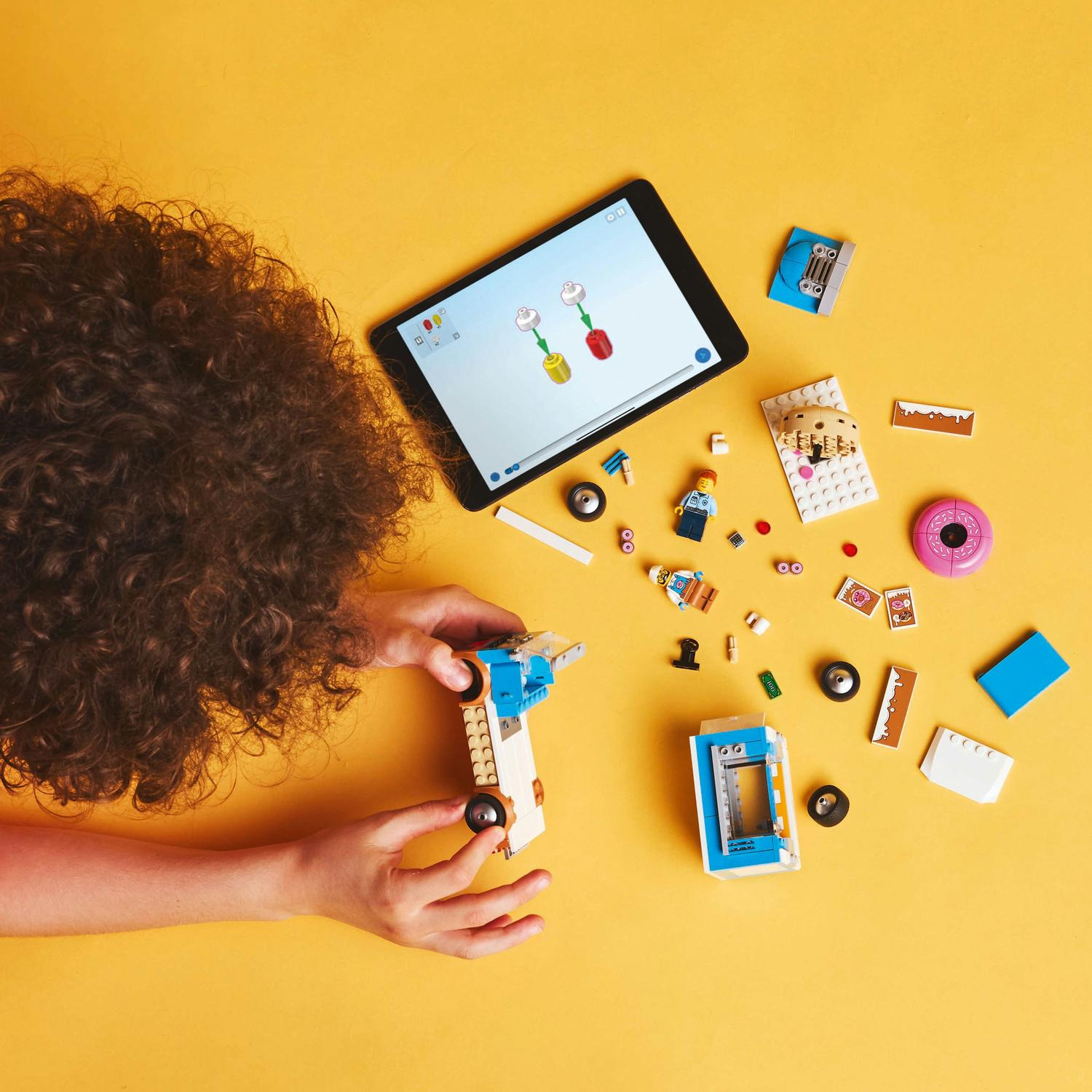 Představujeme dokonalou automobilovou stavebnici pro milovníky sladkých dobrot od 5 let. Stavebnice LEGO® City (60452) Truck s donuty obsahuje dekoraci lahodné polevy, obří koblihu na střeše a bezbariérovou kuchyňku s kávovarem a pokladnou. Děti naservírují chutné koblihy a nápoje z obslužného okénka a po odpojení kiosku si užijí ještě více možností hraní. Stačí přidat minifigurky prodavače a zákazníka a zábava může začít! Návod na stavění mobilního obchodu s donuty LEGO najdete v krabici – nebo si stáhněte aplikaci LEGO Builder, která dětem umožní prozkoumávat a ukládat si virtuální stavebnice, sledovat postup stavění a přibližovat, otáčet a prohlížet si modely ze všech úhlů, zatímco na nich pracují. Stavebnice LEGO City Skvělá vozidla přináší hračky plné úžasných funkcí pro neomezené hraní na zemi, ve vzduchu i na vodě. Děti můžou tuto stavebnici Trucku s donuty přidat k dalším stavebnicím z řady LEGO City (prodávají se samostatně) a užívat si ještě úžasnější dobrodružství!