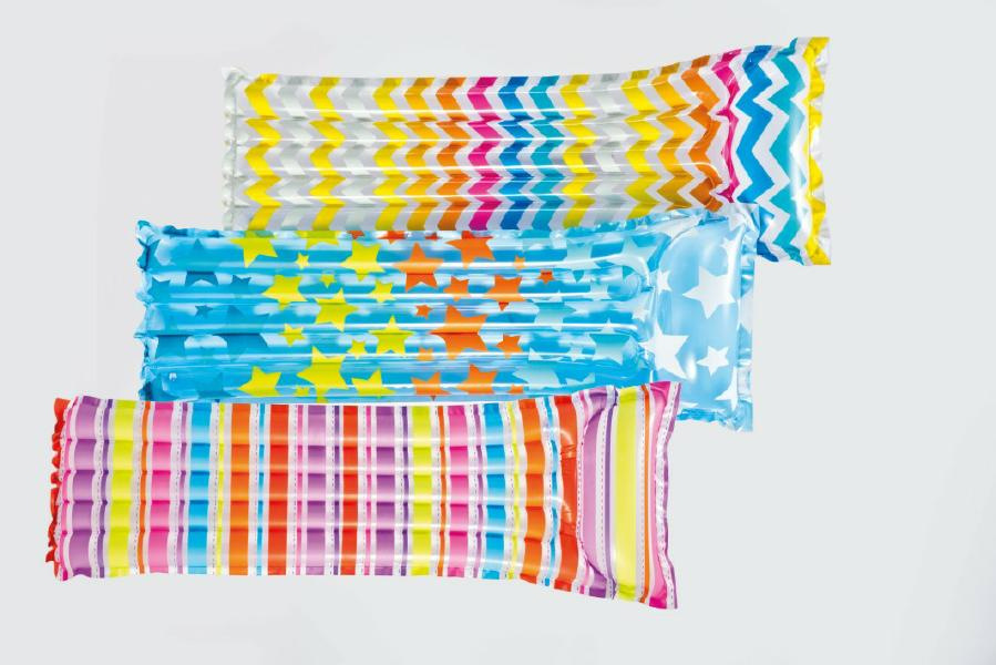 Nafukovací matrace s barevným potiskem o velikosti 183 x 69 cm. Velice odolný materiál vinyl. Dvě na