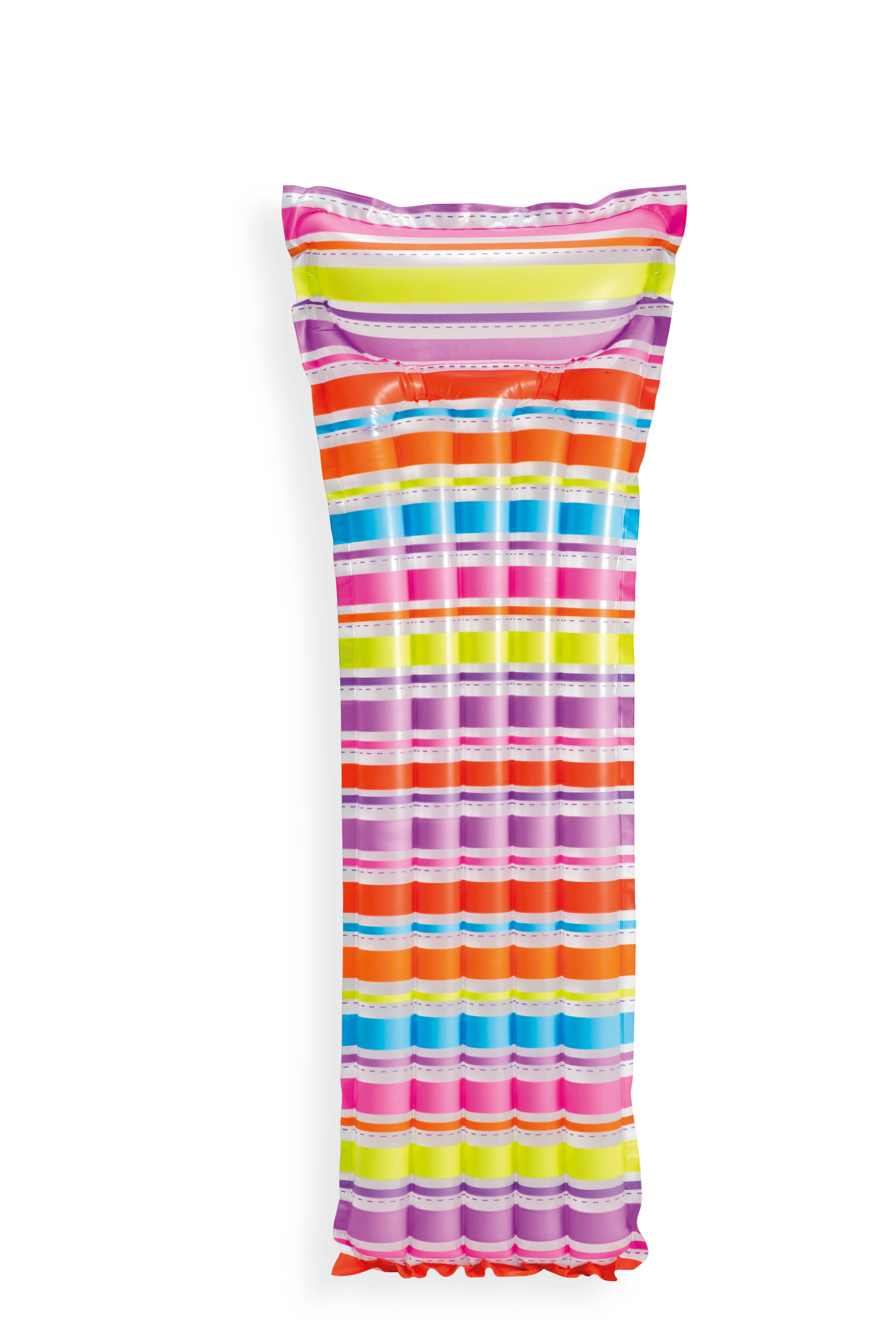 Nafukovací lehátko o rozměrech 183 x 69 cm, v zářivých barvách a s integrovaným polštářem. 2 vzducho