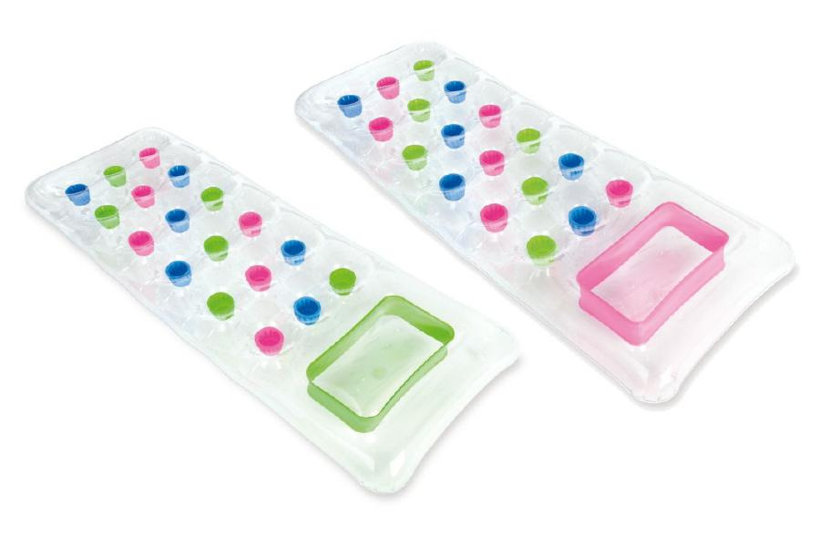 S opalovacím nafukovacím lehátkem na vodu s podhlavníkem si skvěle užijete horké letní dny v bazénu i na moři. Součástí balení je opravná sada. Maximální nosnost 100 kg. Je vyrobeno z pevného transparentního vinylu (0,28mm), který vám při opalování umožní sledovat dění pod vodní hladinou. 2 nafukovací komory. Rozměry 188 x 71 cm.