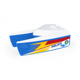Policejní loď ve stylu katamaránu. Vhodné pro hraní ve vaně. 17 cm. Baleno v sáčku.