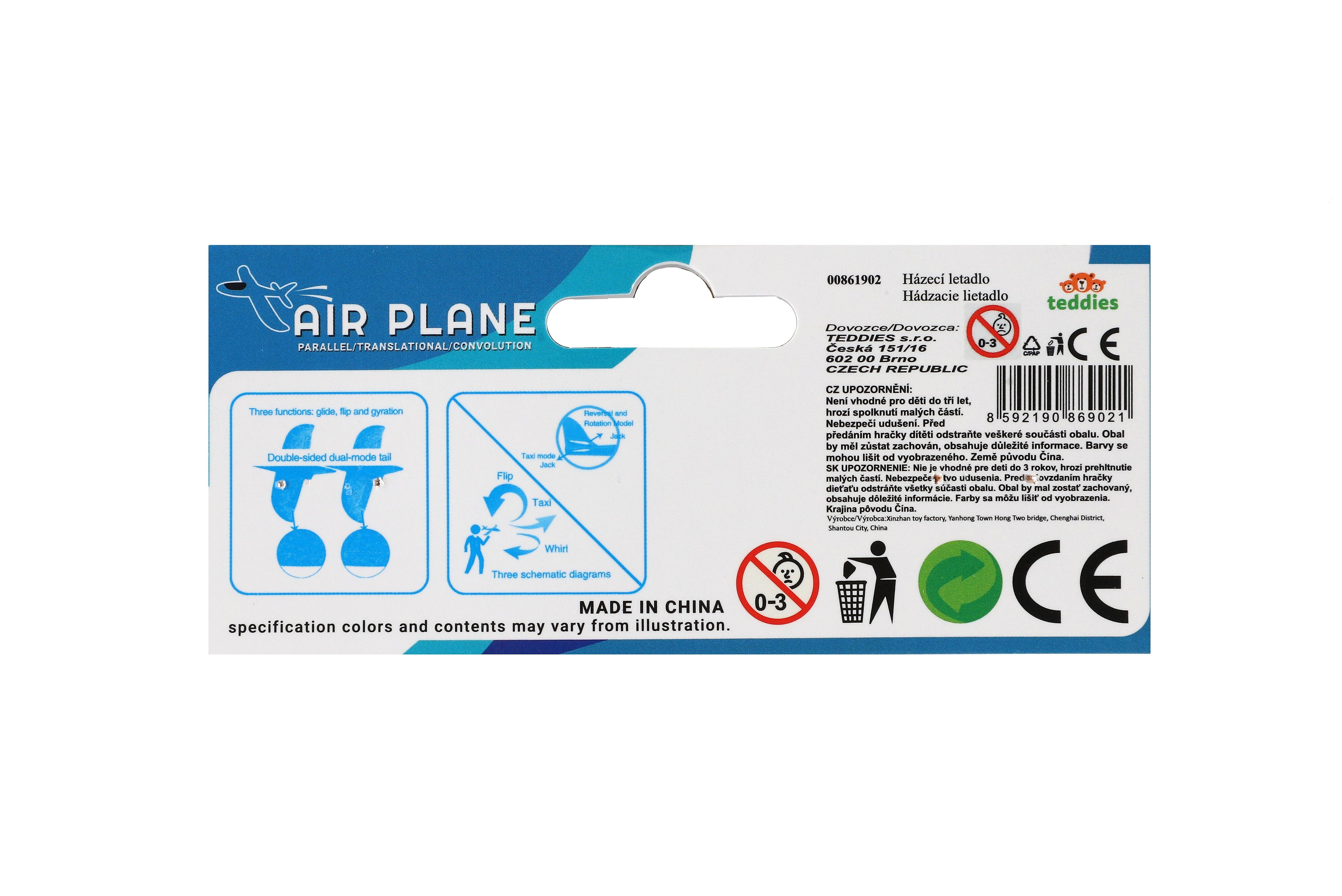 Pořiď si házecí letadlo, se kterým si užiješ spoustu legrace při hraní venku! Sleduj, jak model plachtí vzduchem! Kam až dolétne? Velikost letadla je 22 cm. Rozměry balení 12 x 32 x 3 cm. Vhodné pro děti od 3 let.