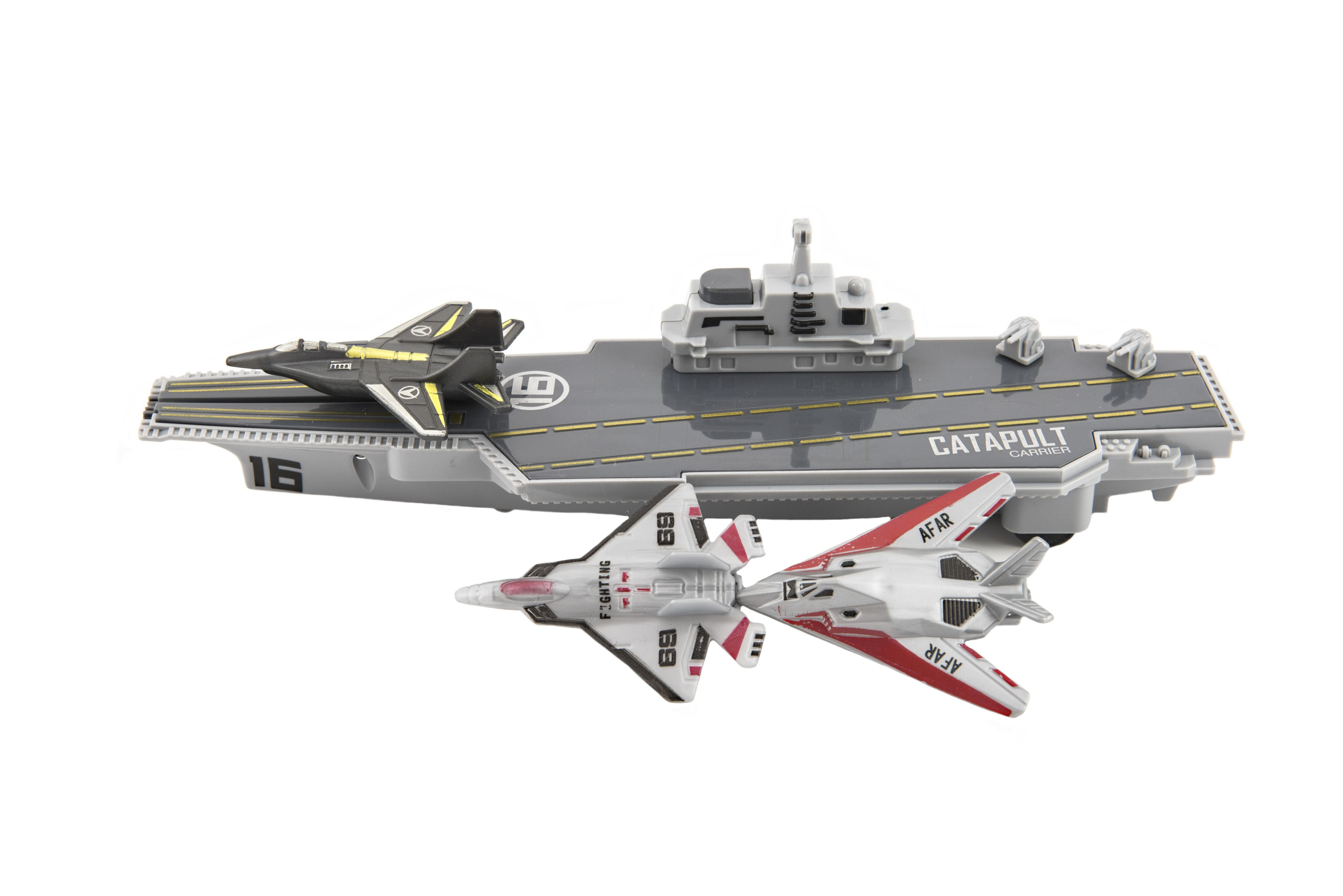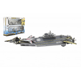 Letadlová loď 24cm + stíhačky 3 ks plast v krabici 29x22x7cm