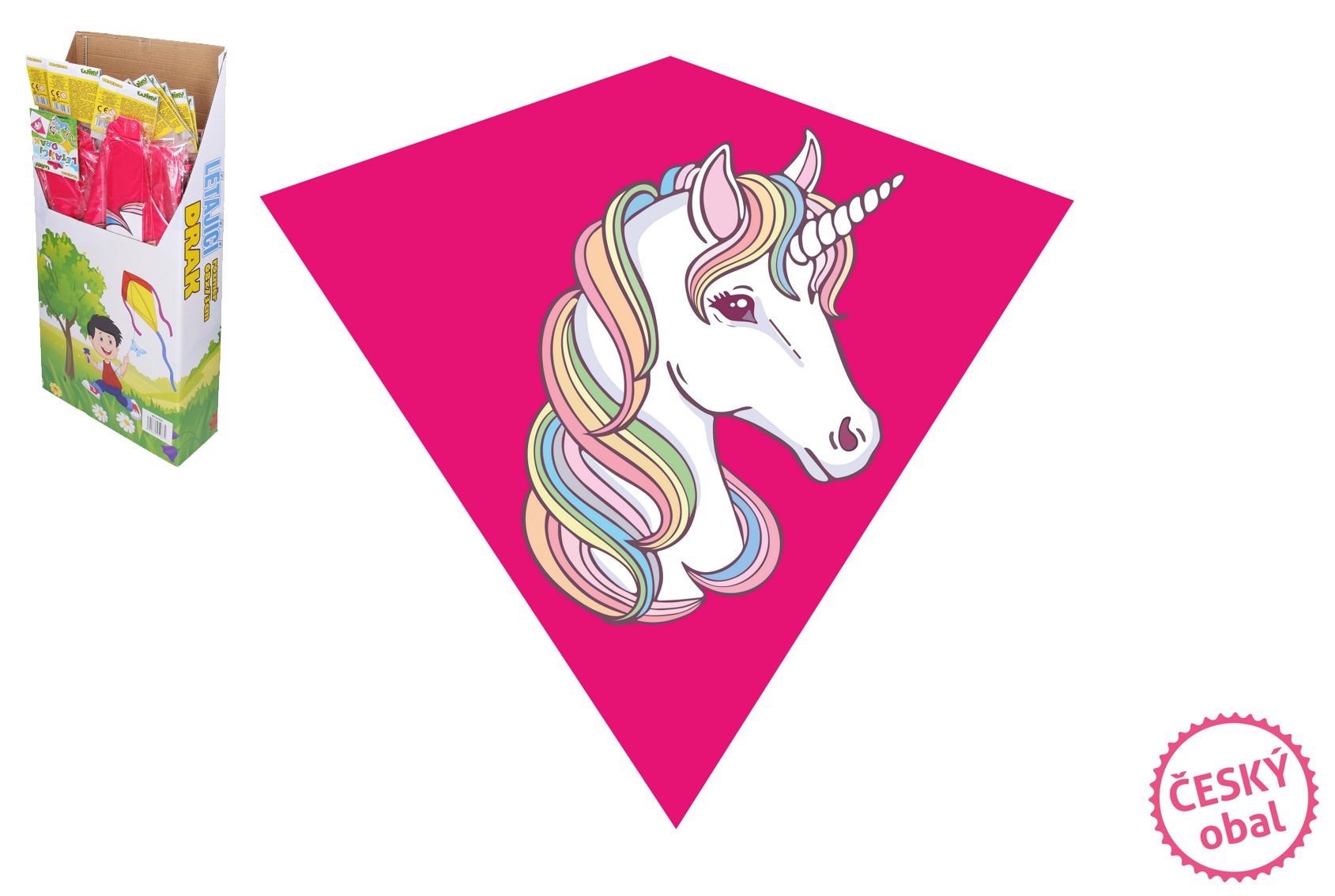 Parádní růžový létající drak se bude na obloze určitě moc dobře vyjímat. Tak hurá na drakiádu! Pojďte se společně vyřádit při pouštění draků, třeba s tímto motivem jednorožce! Rozměr draka: 68 x 37 cm Vhodné pro děti od 3 let