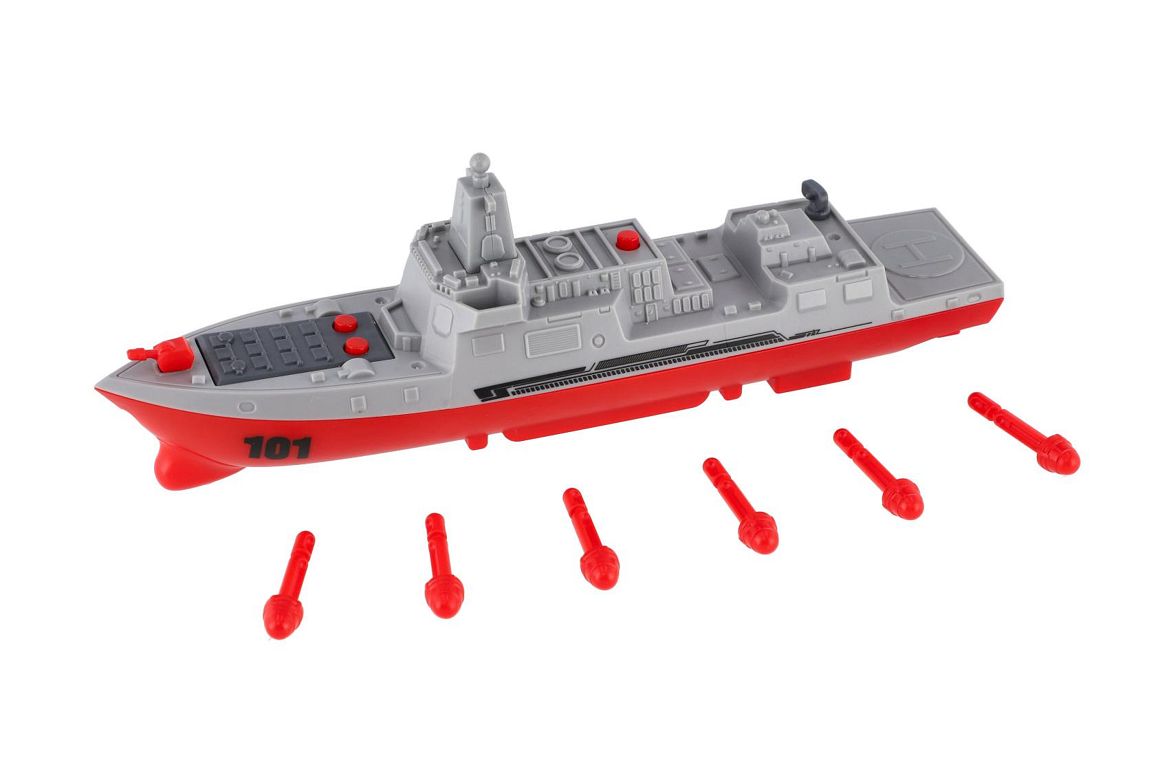 Akční vojenský křižník, který přináší zábavu plnou dobrodružství. Model je vybaven setrvačníkovým pohonem pro plynulý pohyb a střeleckou funkcí, díky které si děti užijí dynamickou hru na moři. Detailní provedení a doplňky podporují kreativní hru a umožňují dětem vytvářet vlastní námořní mise.