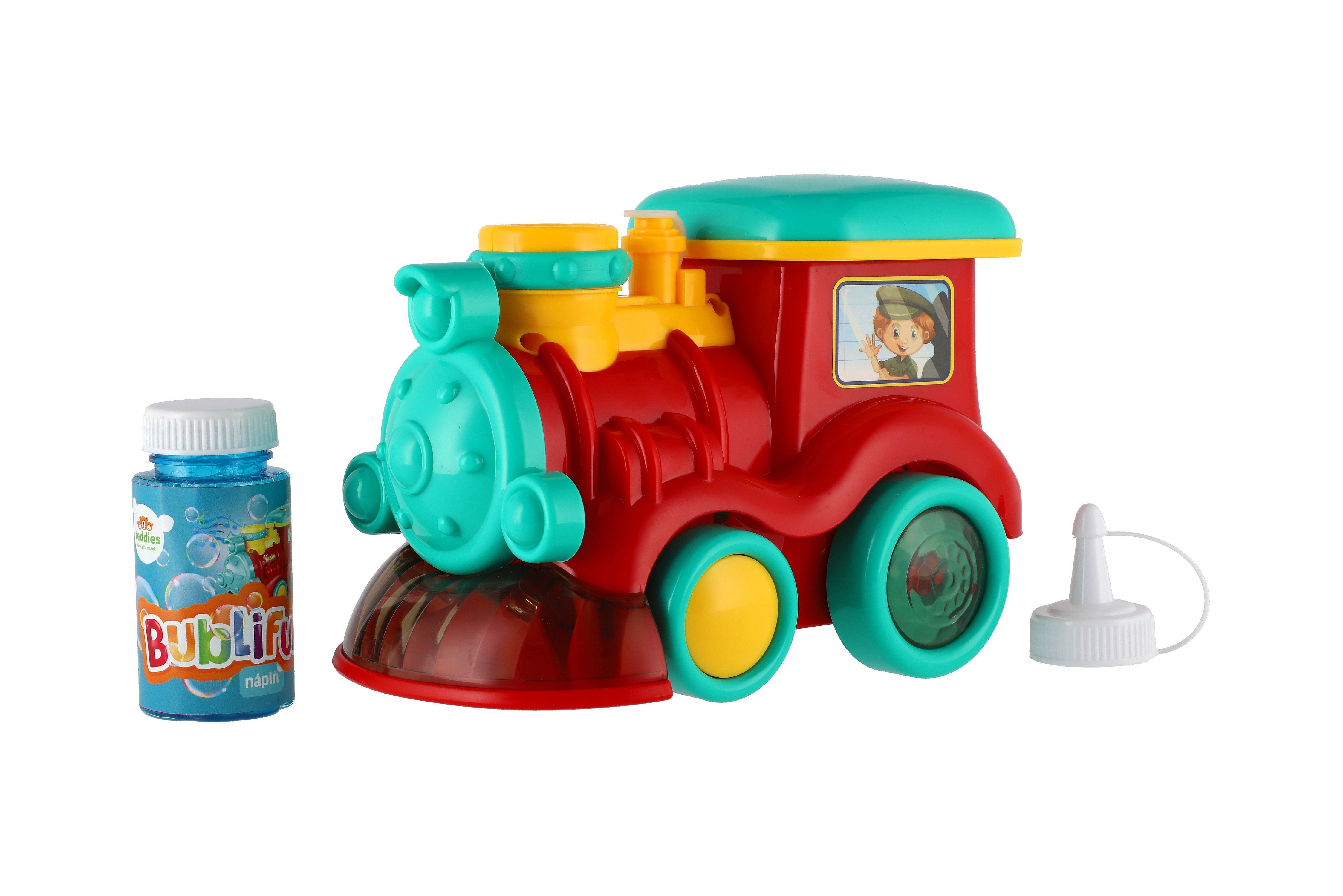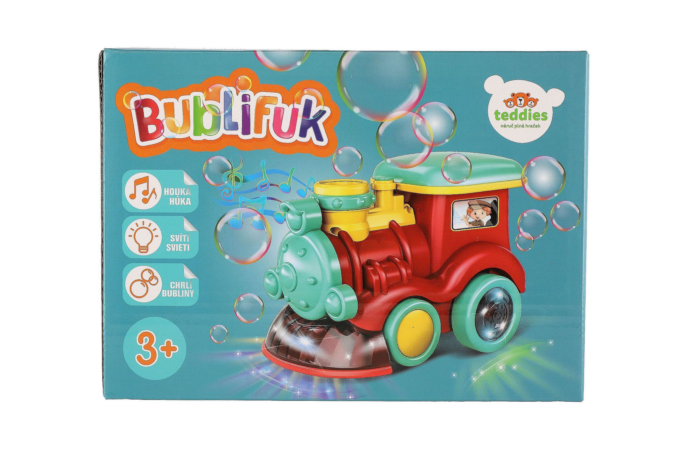 Roztomilá lokomotiva se zvukem, světlem a bublifukem. Po zapnutí vydává zvuky houkání, barevně bliká a během jízdy vytváří bublinky. Součástí balení je bublifuk, náplň a tekutina se naleje do komínu pomocí přiloženého kapátka. Baterie 4 x AA nejsou součástí balení. Rozměr lokomotivy: 18 cm Rozměr balení 19 x 14 x 12 cm Vhodné pro děti od 3 let.