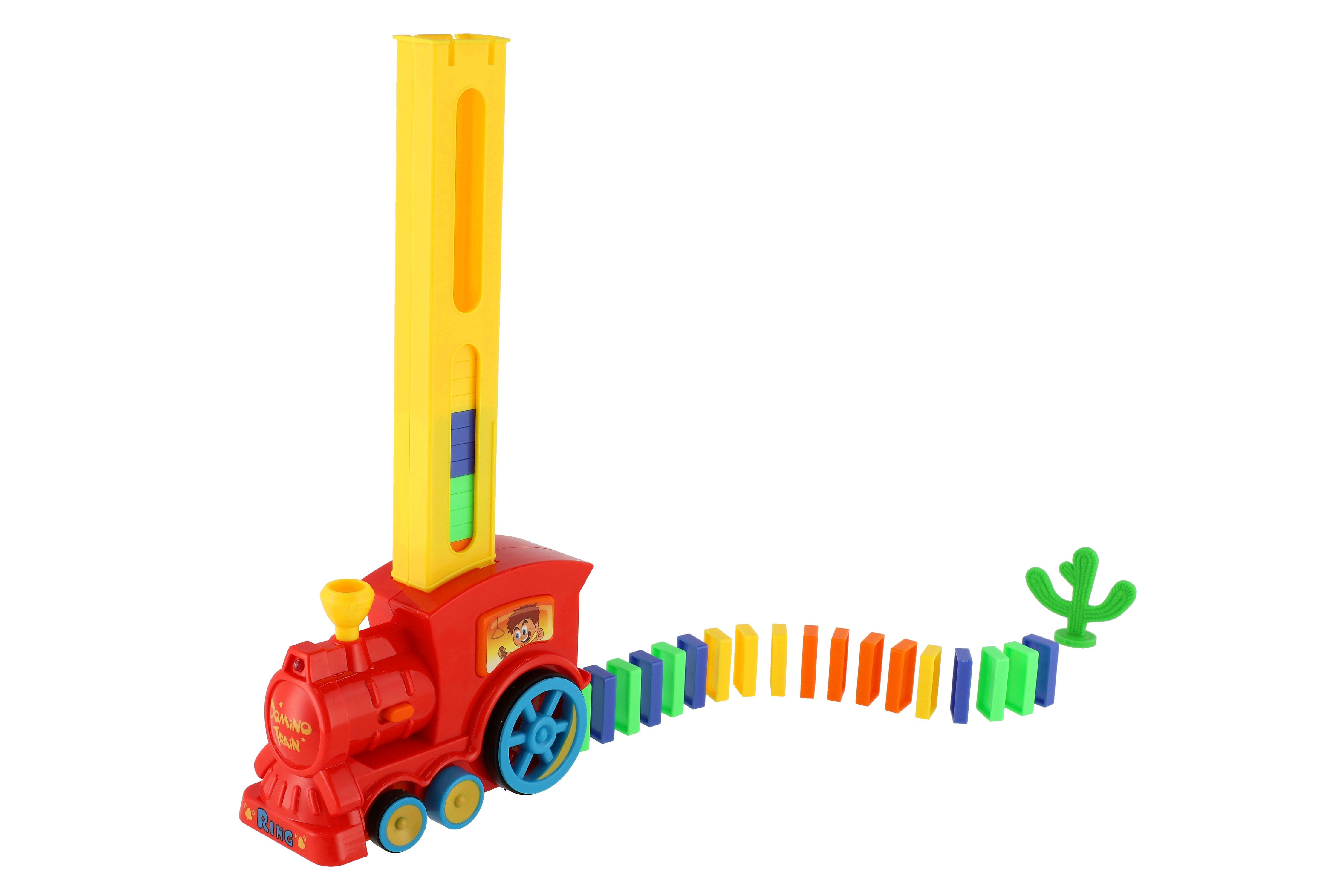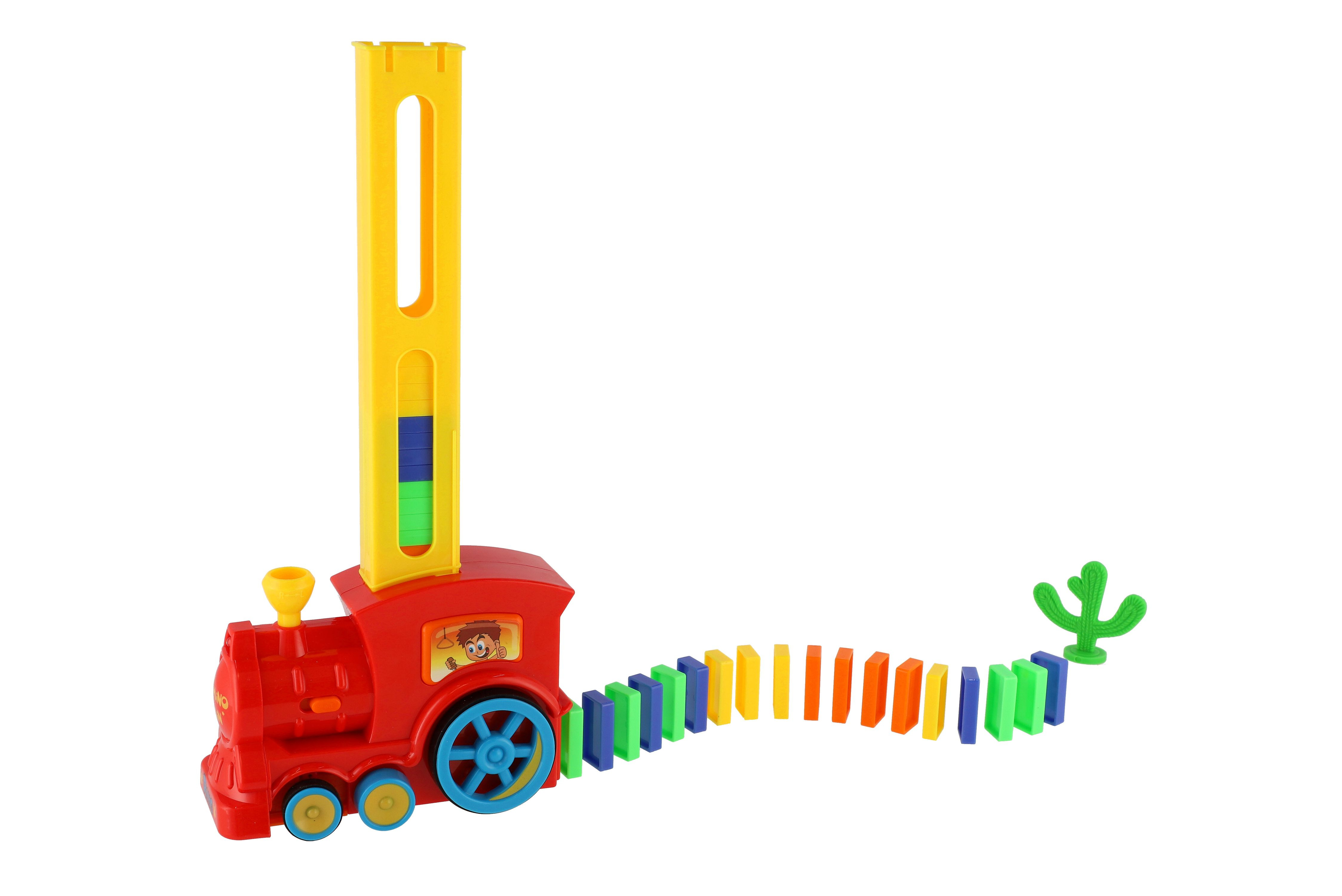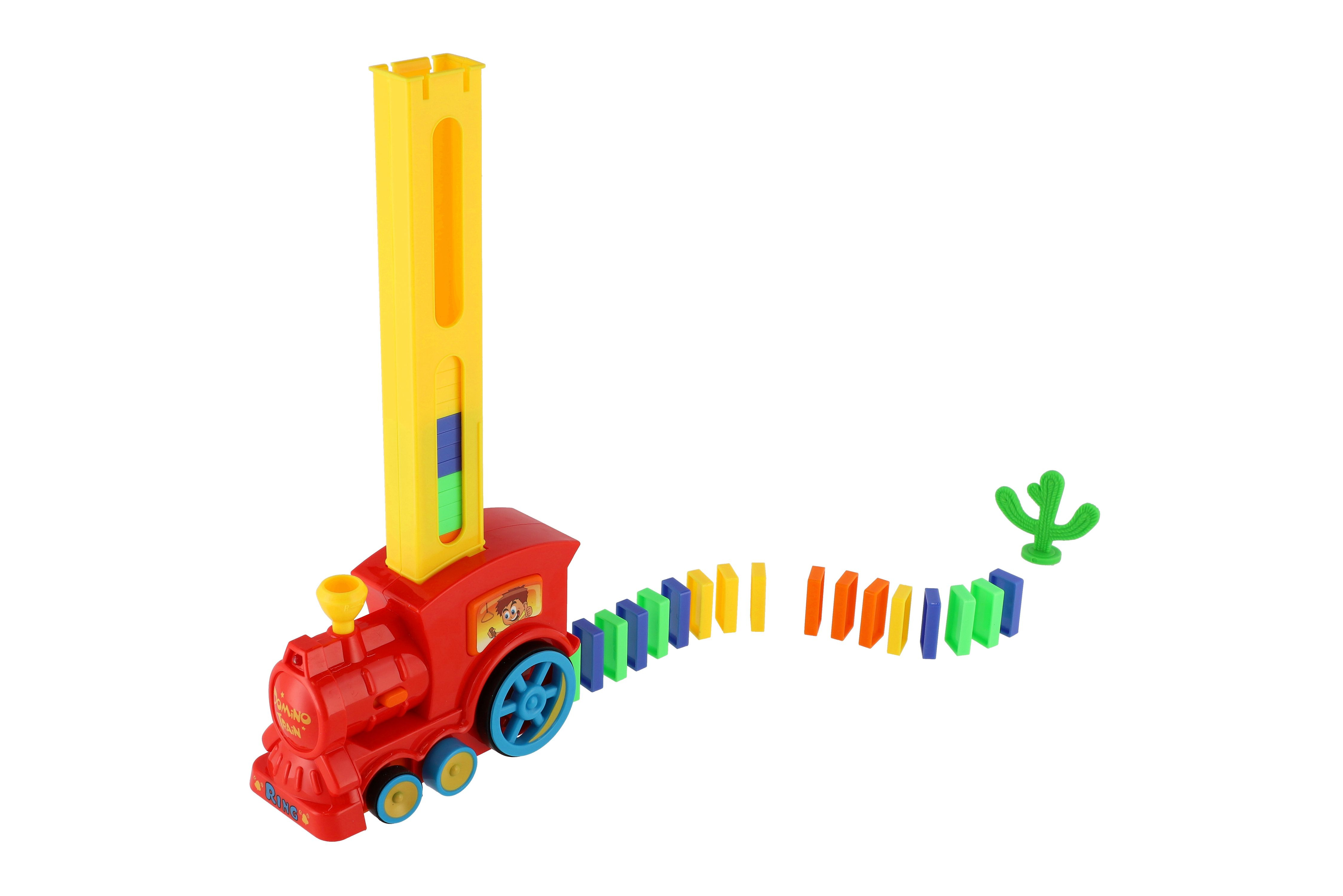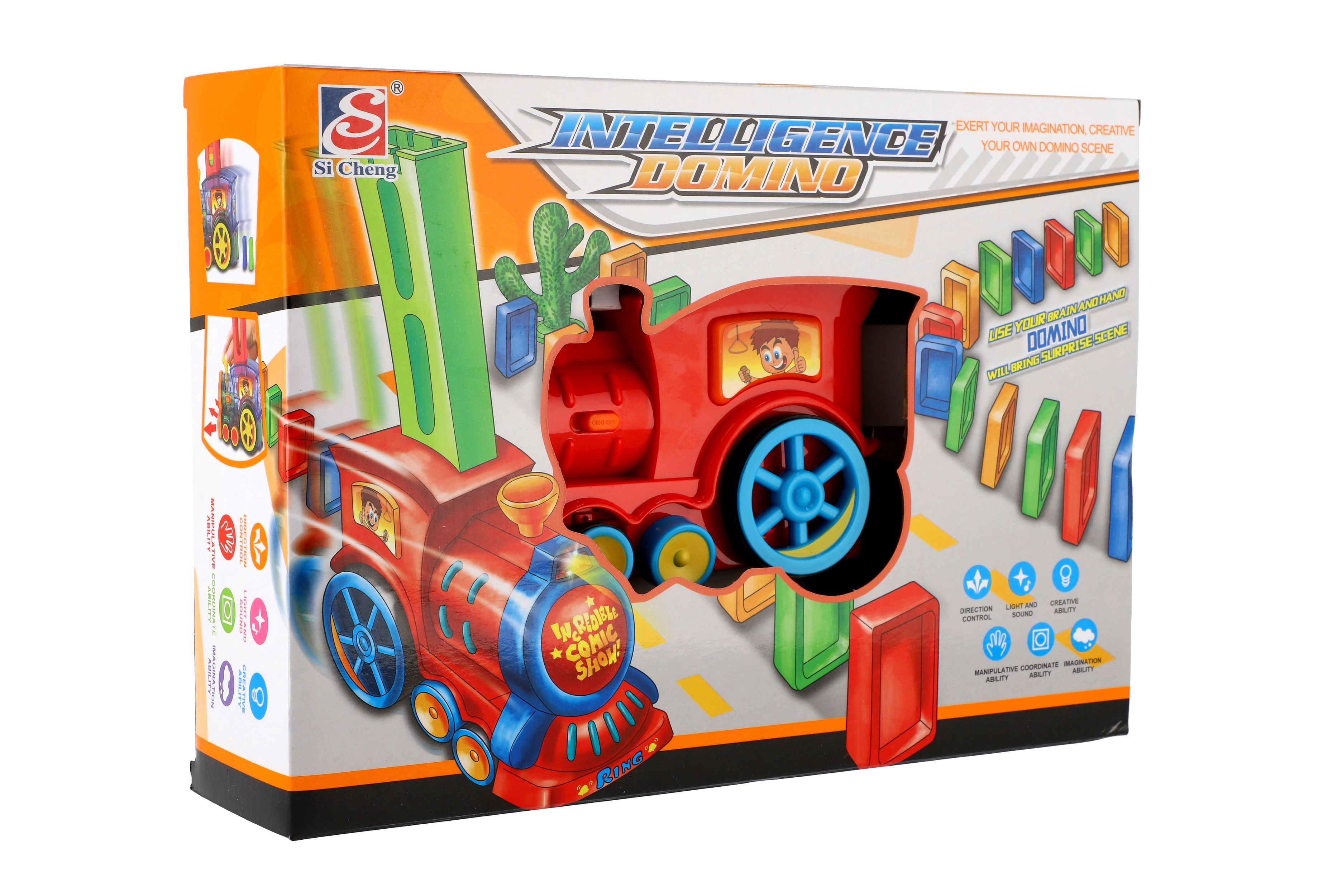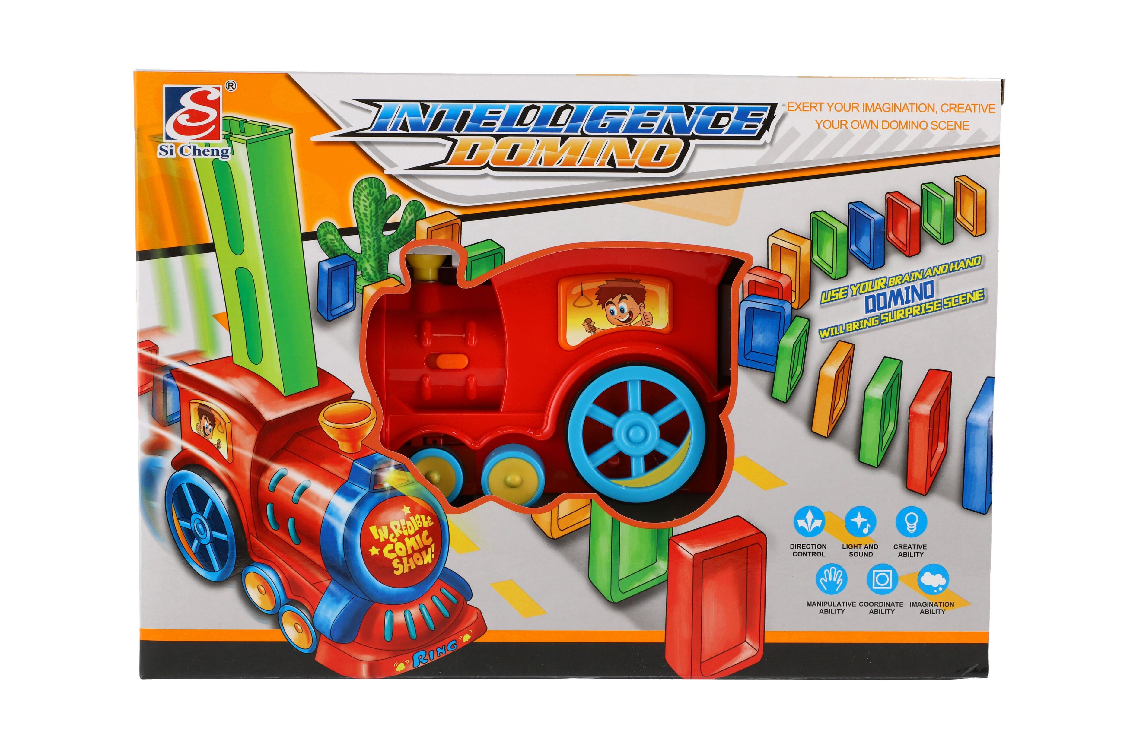 Teddies Lokomotiva/Vlak domino stavěcí plast 16cm na baterie se zvukem se světlem v krabici 33x23x8cm