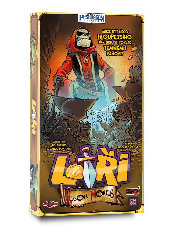 Obsah balení: 36 žetonů mincí 40 žetonů životů 6 kostek 60 karet lotrů 6 karet nápověd 4 karty Rigora Mortise 1 česká pravidla