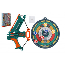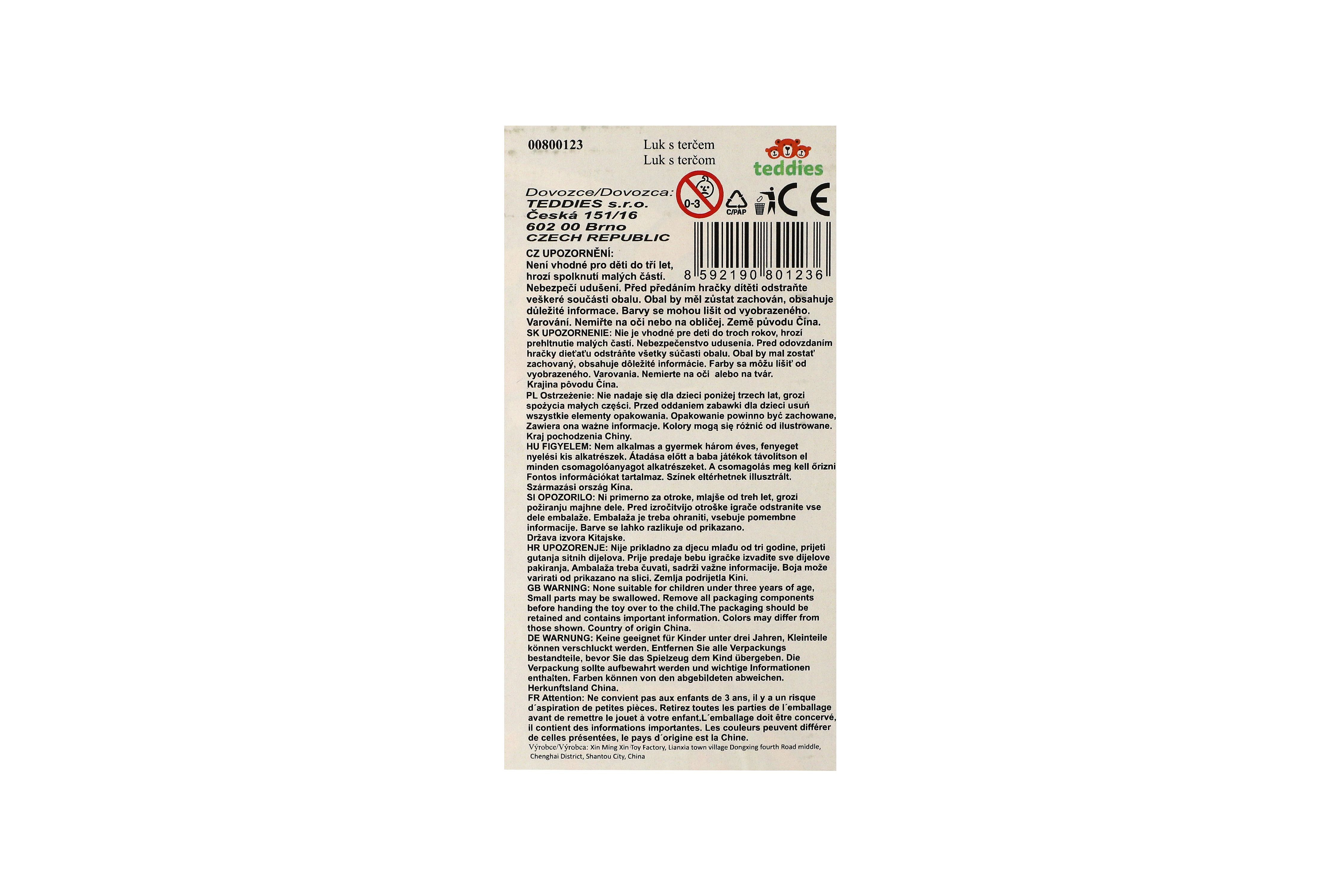 Popis Luk 33cm vystřelující míčky na suchý zip 6ks plast + terč 2 barvy v krabici 27x35x7cm