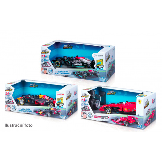 Tech RC, Racing Series. RC modely závodních formulí. Variaty: RC model 2021 Mercedes-AMG F1 - Lewis Hamilton, Frekvence: 2,4 GHz, závodit lze až se 4 modely najednou,baterie jsou součástí balení, vozidlo - vestavěná akumulátorová baterie - nabíjení přes USB kabel, ovladač-2ks 1,5V AAA, dosah vysílače-cca 35 metrů, doba jízdy-20 minut, rychlost-7,9 km/h, délka modelu cca 20 cm. No.5 Sebastian Vettel, No.16 Charles Leclerc. Frekvence: 2,4 GHz, závodit lze až se 4 modely najednou,baterie jsou součástí balení, vozidlo - vestavěná akumulátorová baterie - nabíjení přes USB kabel, ovladač-2ks 1,5V AAA, dosah vysílače-cca 35 metrů, doba jízdy-20 minut, rychlost-7,9 km/h, délka modelu cca 20 cm. Max Verstappen - Frekvence: 2,4 GHz, závodit lze až se 4 modely najednou, baterie jsou součástí balení, vozidlo - vestavěná akumulátorová baterie - nabíjení přes USB kabel, ovladač-2ks 1,5V AAA, dosah vysílače-cca 35 metrů, doba jízdy-20 minut, rychlost-7,9 km/h, délka modelu cca 20 cm. Nevhodné pro dě