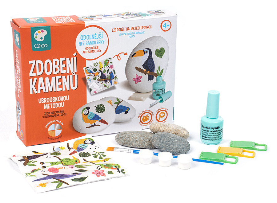 Ozdob si kámen. Sada obsahuje vše pro přípravu dekoračních doplňků - pomocí specielního lepidla si o