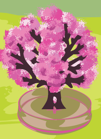 Výroba sakury. Sestav sakuru z papíru, nalij kouzelnou tekutinu do mistikčy a dívej se, jak sakura rozkvétá.