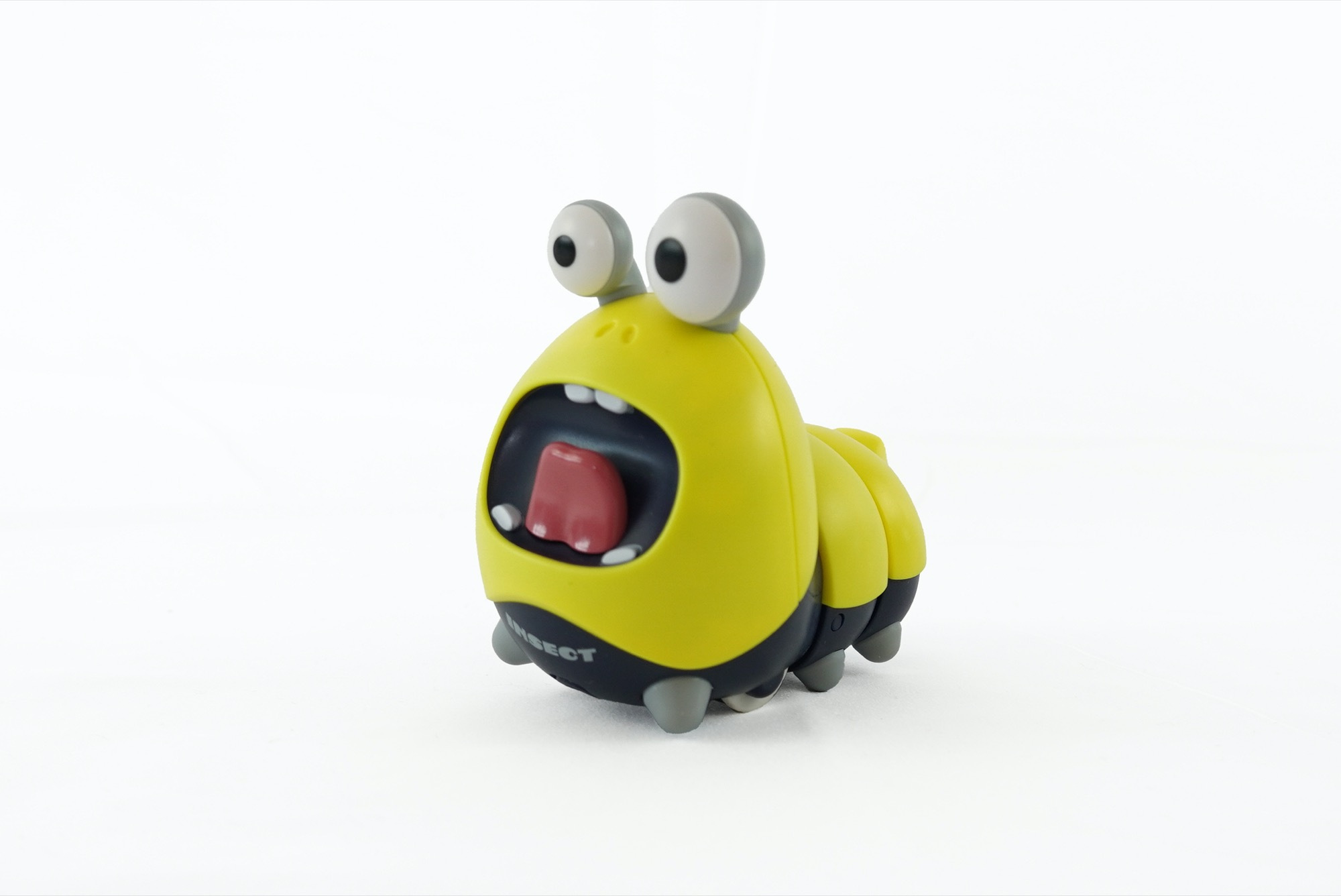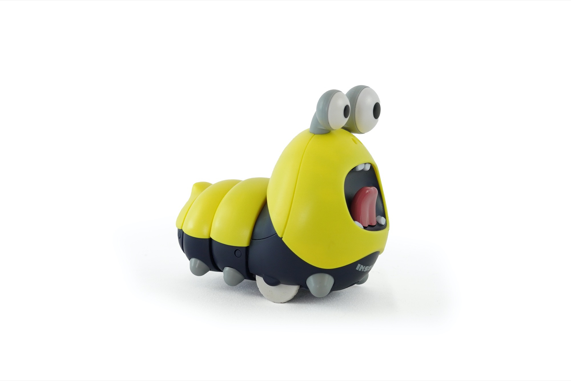 Malá larvička na baterie, která se plazí a po rovné ploše.