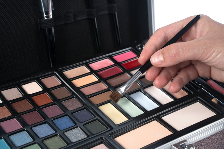 Oční stíny, tvářenky, rozjasňovače, štětečky, lesky na rty, tužka na oči, laky na nehty, zrcátko.