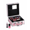 Oční stíny, tvářenku, rozjasňovač, rtěnku, lak na nehty, štětečky, lesky na rty a zrcátko.