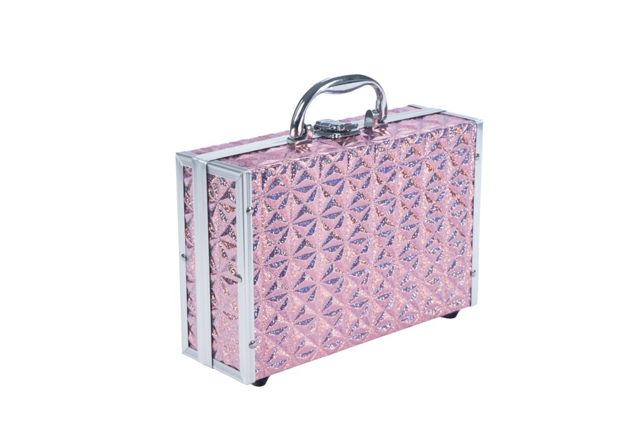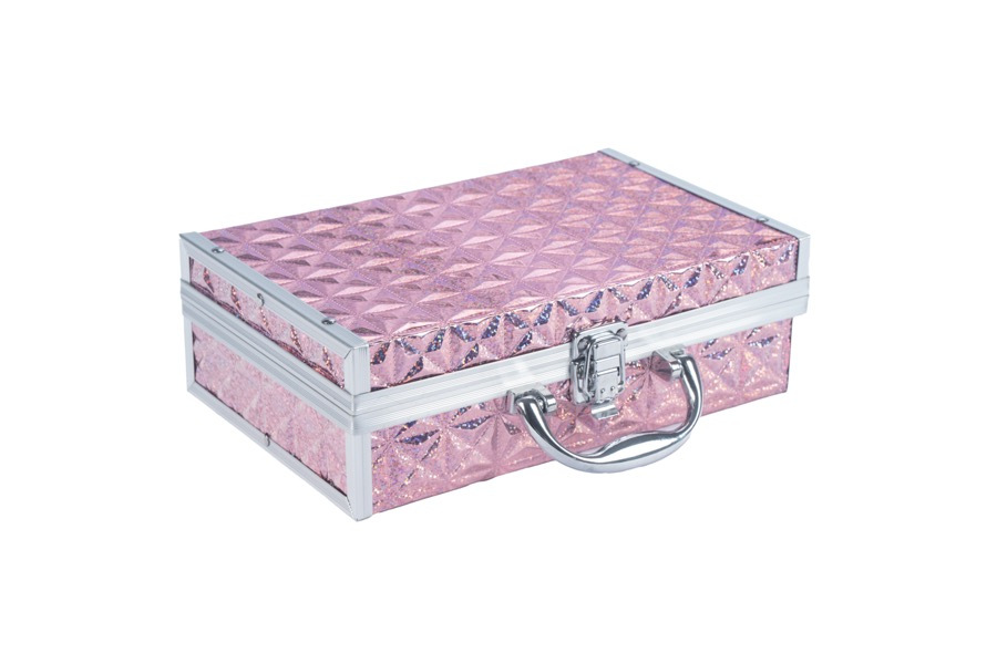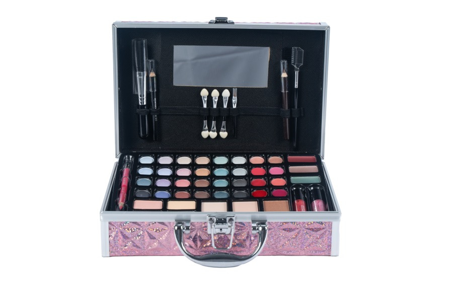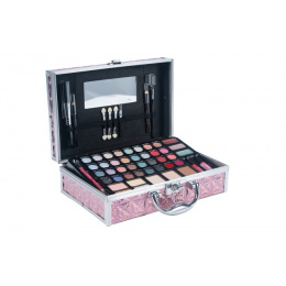 Kosmetický kufřík. Obsah: 24 barev očních stínů, 8 třpytek na rty, 4 tvářenky, 3 pudry na obličej, 2 lesky na rty, 3 krémové oční stíny, 1 dvojitá tužka, 2 tužky na oči , 1 štětec na obočí, 3 dvojité aplikátory, 1 štětec na rty, 1 štětec na tvářenku, 1 zrcátko.