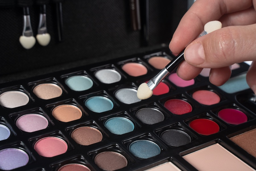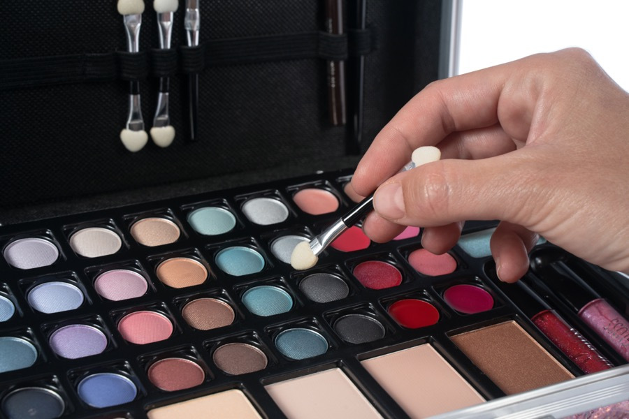 Oční stíny, tvářenky, rozjasňovače, štětečky, lesky na rty, tužky na oči, konturku na rty a zrcátko.