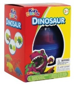 Plastové vajíčko, které obsahuje modelínu a zvořítka na výrobu dinosaurů. Balení obsahu 2 sáčky s modelínou, 2 tvořítka na dinosaury a plastové vajíčko, do které lze vše schovat.