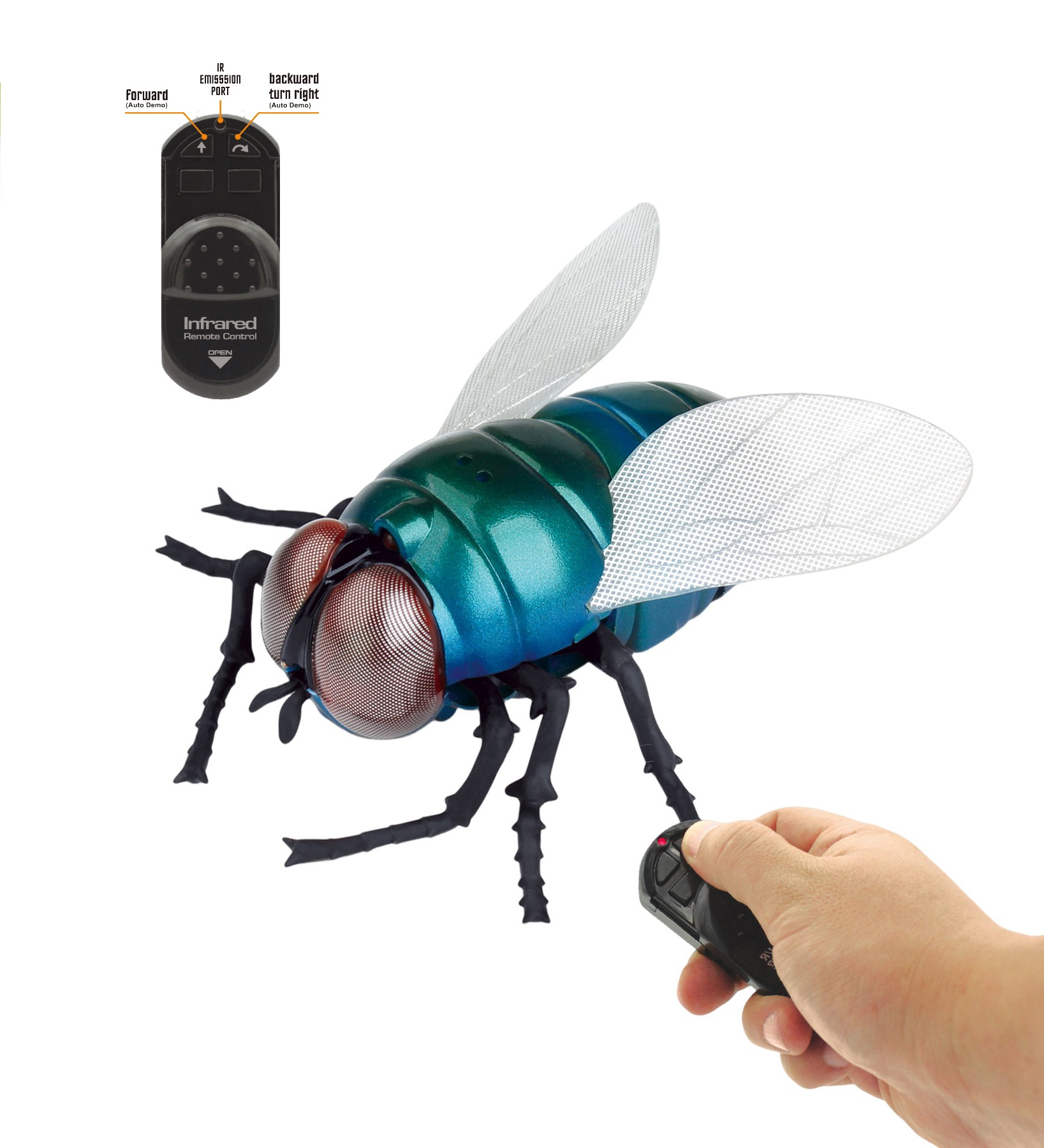 Velká moucha na dálkové ovládání. Chodí všemi směry.