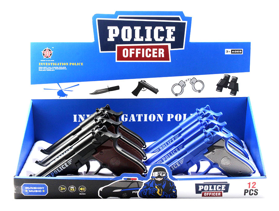 Teddies Pistole se zaměřovačem plast 20cm na baterie se zvukem a se světlem v krabici