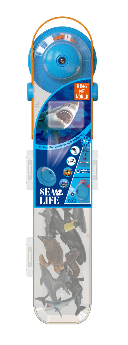 Projektor s mořskými motivy: Hlavní částí sady je projektor, který po vložení jednoho ze dvou kotoučů promítá na stěnu nebo strop obrázky mořských živočichů. Projektor je navržen tak, aby se snadno ovládal i malými dětskými ručičkami.