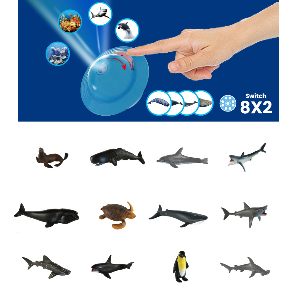 Modely mořských zvířátek: K sadě jsou přiloženy i malé figurky zvířátek, která se promítají na plátno. Děti si tak mohou zvířátka osahat, hrát si s nimi a porovnávat je s obrázky na stěně.