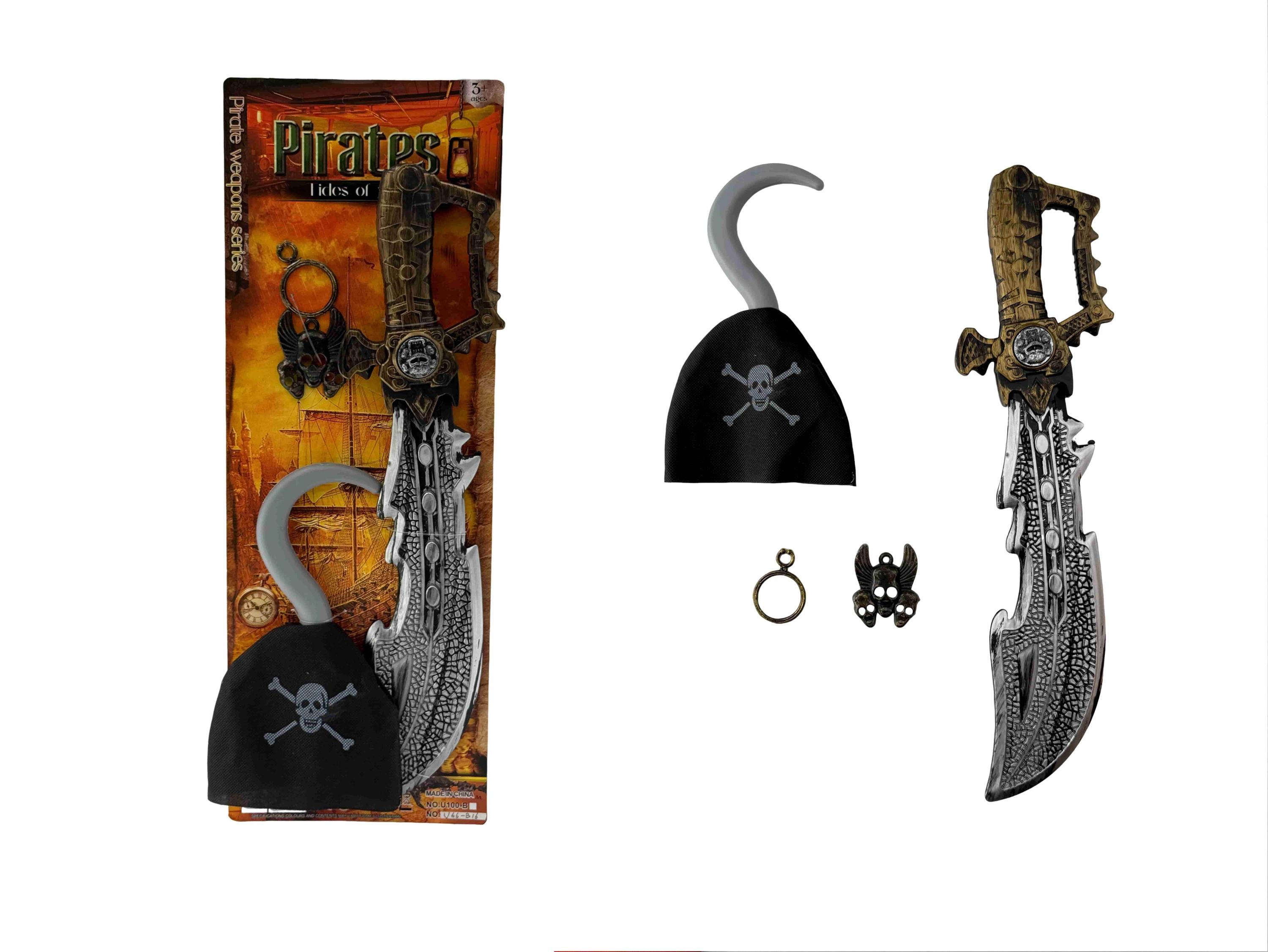 Vydejte se na plavbu jako pravý kapitán! Tato sada obsahuje vše, co potřebuje odvážný vůdce: pirátskou šavli pro souboje, odznak pro uznání vaší autority a hák místo ruky pro ten správný pirátský vzhled.