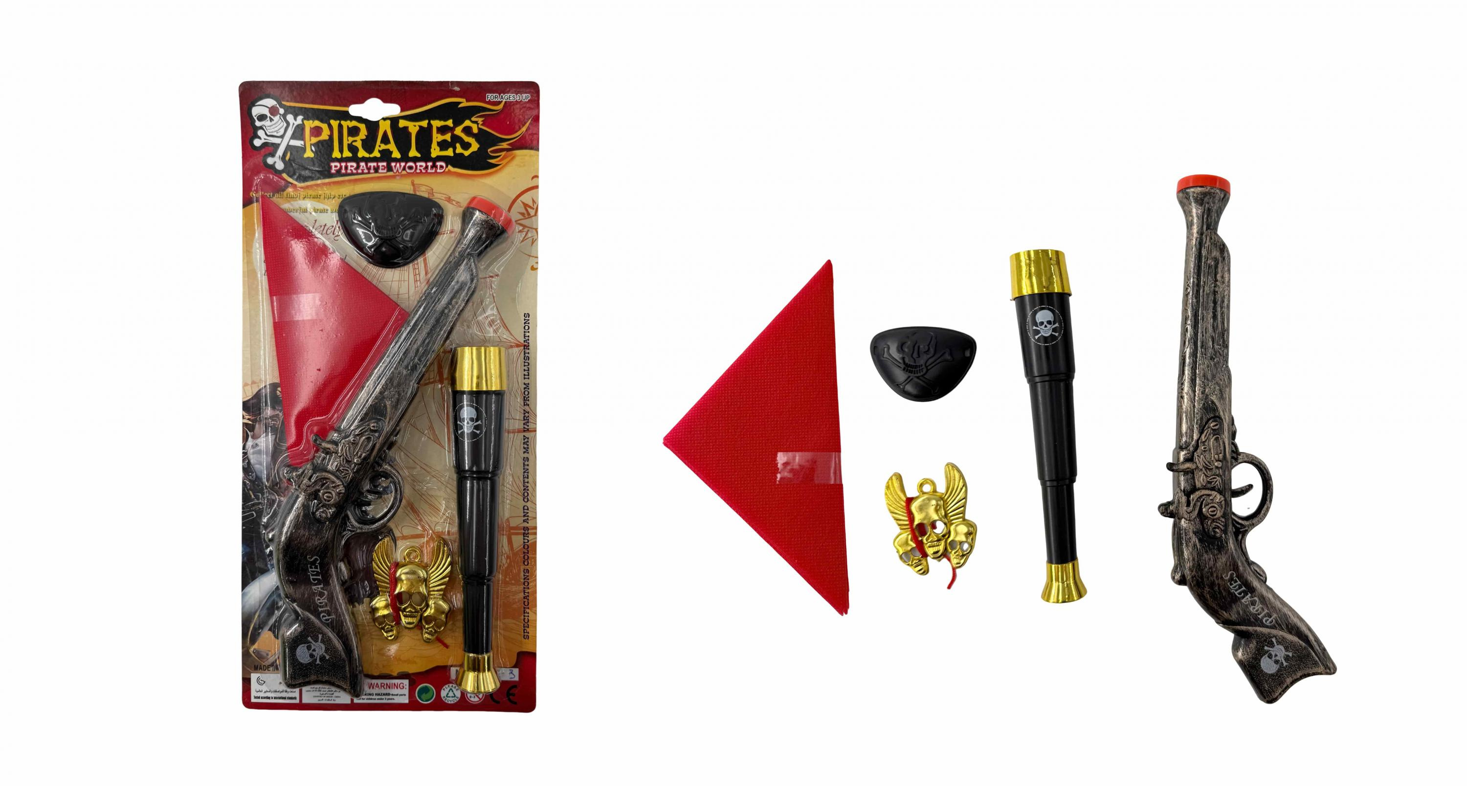 Připravte se na dobrodružství na širém moři! PLEJO Sada pro malé piráty obsahuje vše, co potřebuje každý mořský vlk: bambitku, dalekohled, šátek, pirátský odznak a pásku přes oko.