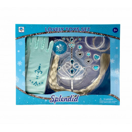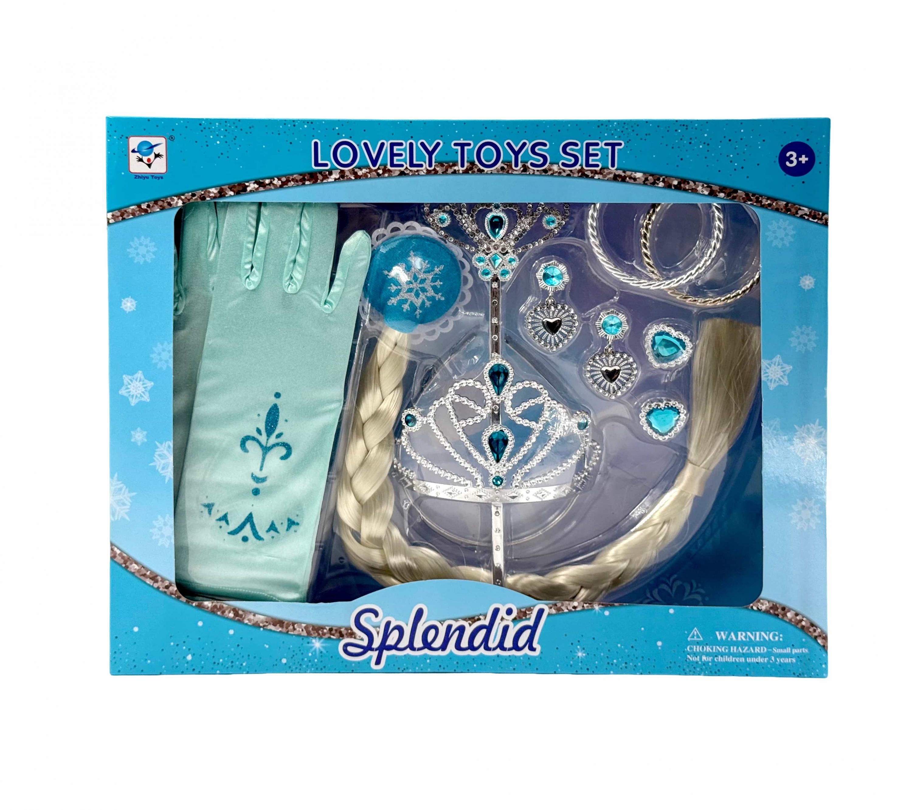 Nádherná sada šperků, která má přidělaný dlouhý cop, díky němu se můžete změnit na princeznu Elzu, nebo kteroukoliv jinou milovanou princeznu.