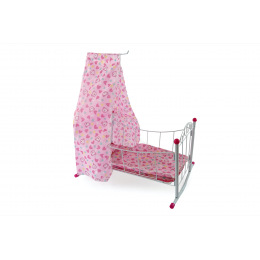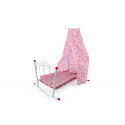 Kovová postýlka pro miminko max velikosti 38 cm. Postýlka je s nebesy, slabou peřinkou malým polštářkem.