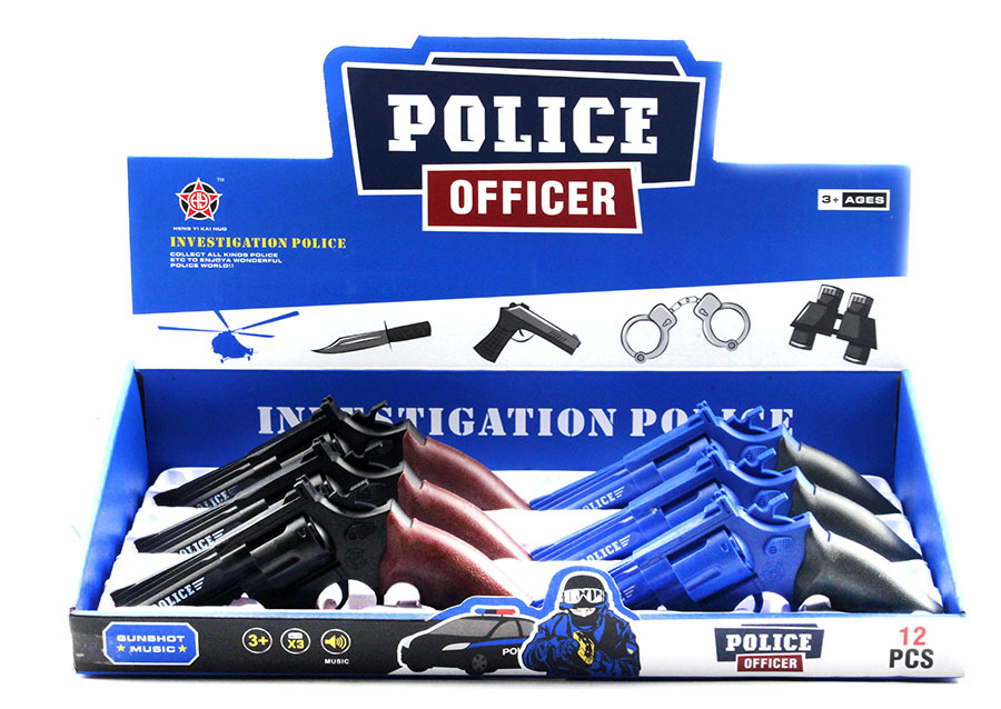 Wiky Pistole/Samopal policejní s pouty plast 24cm na baterie se zvukem se světlem v krabici 26x18x5cm