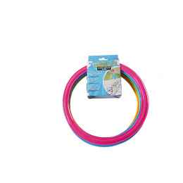 Barevné plastové kruhy, které se poskládají libovolně na zem a můžou se pomocí svorek spojit, aby dr