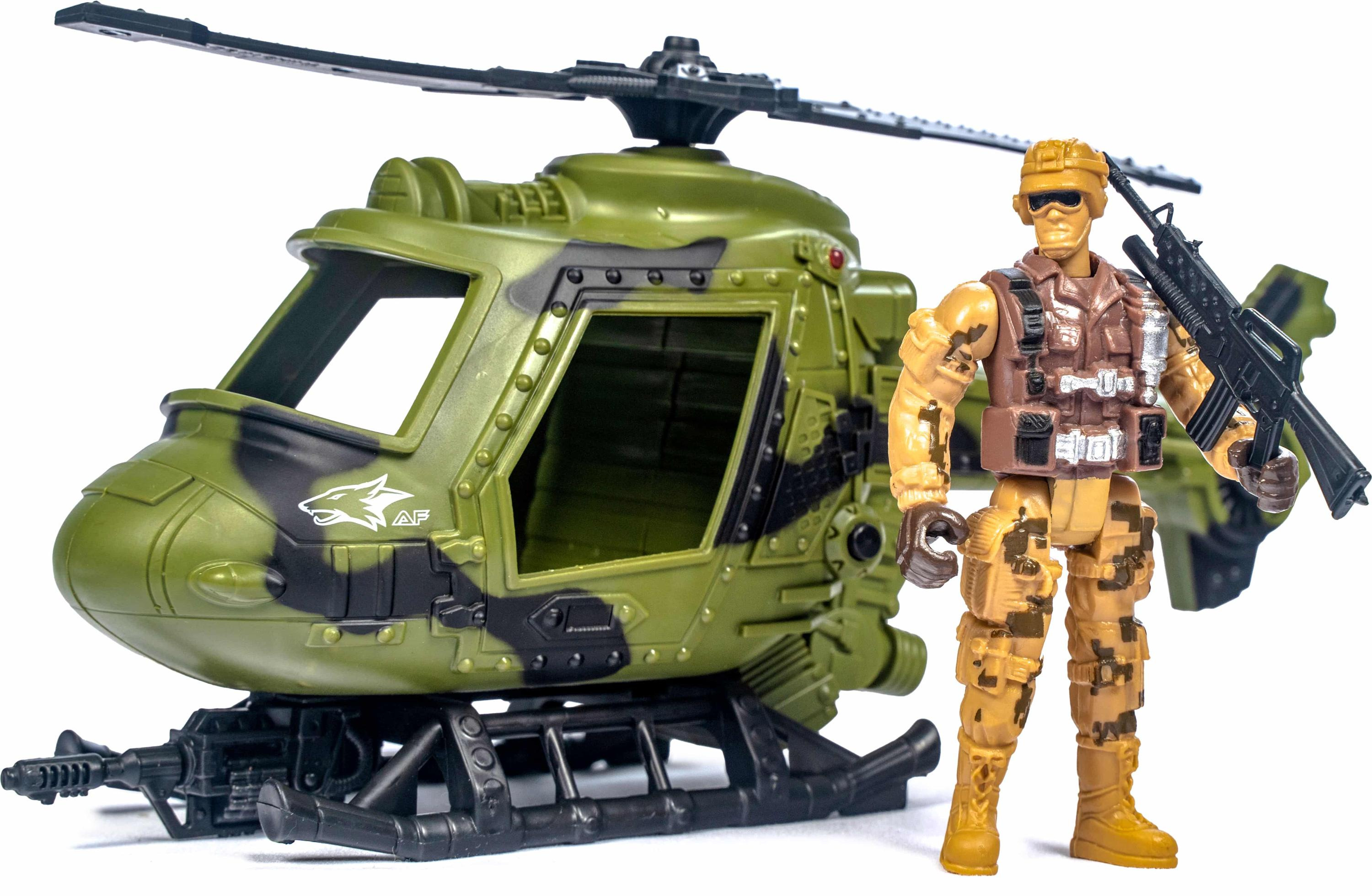 Vojenská sada se světelnými a zvukovými efekty. Obsahuje vojenské vozidlo nebo helikoptéru, postavičku vojáka a další příslušenství.