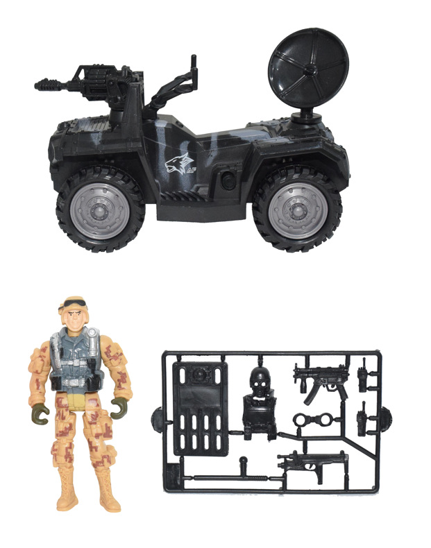 Vojenská sada se světelnými a zvukovými efekty. Obsahuje vojenské vozidlo, postavičku vojáka a další příslušenství.