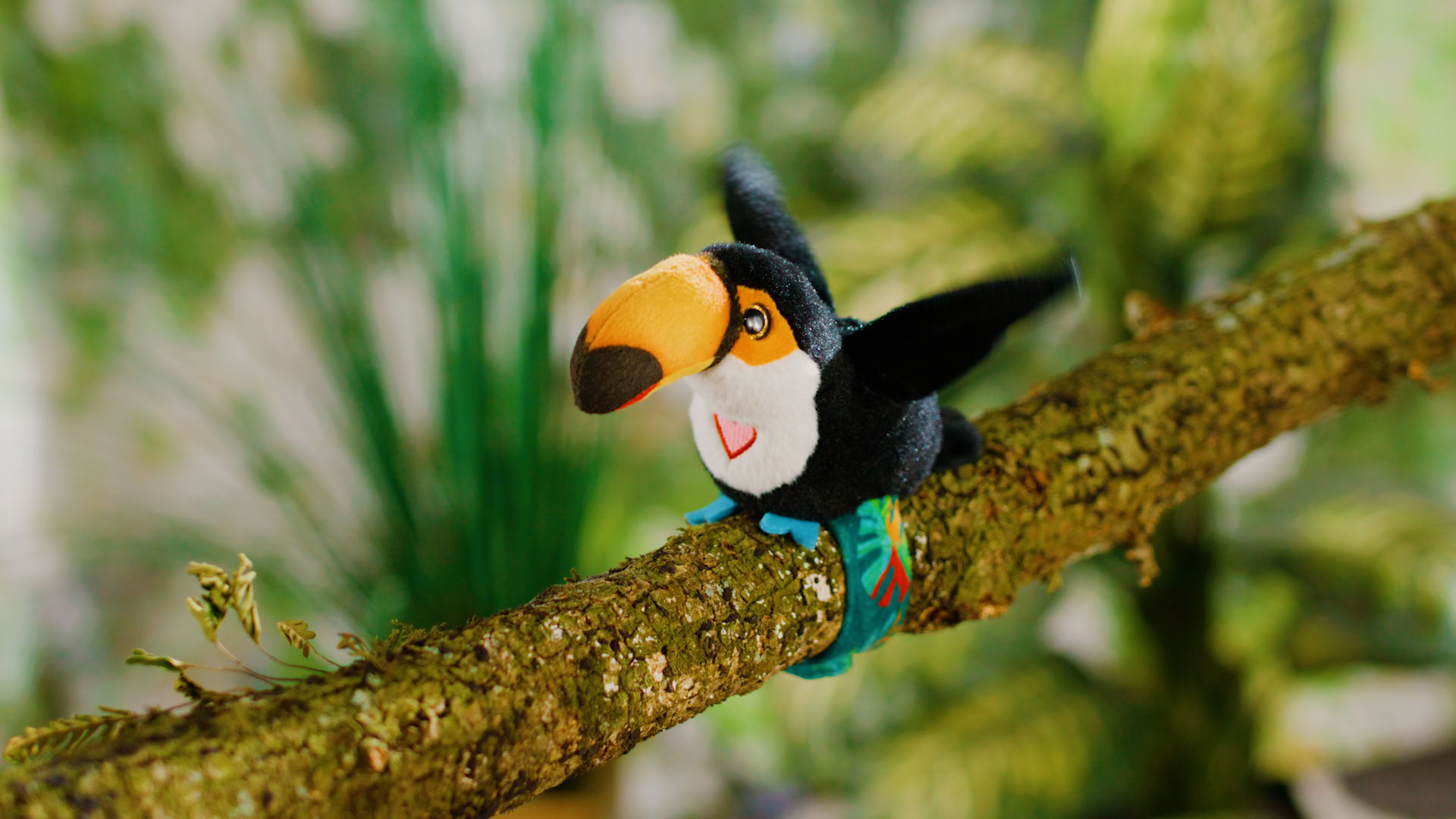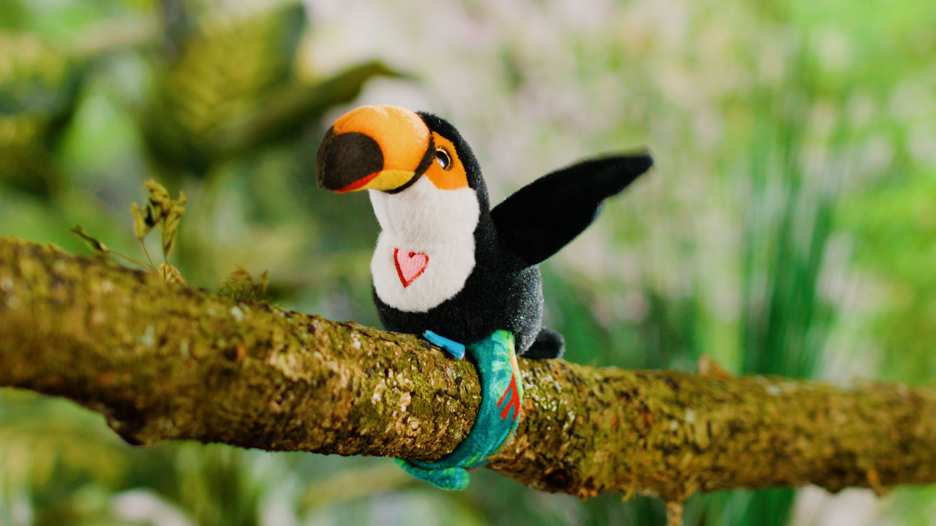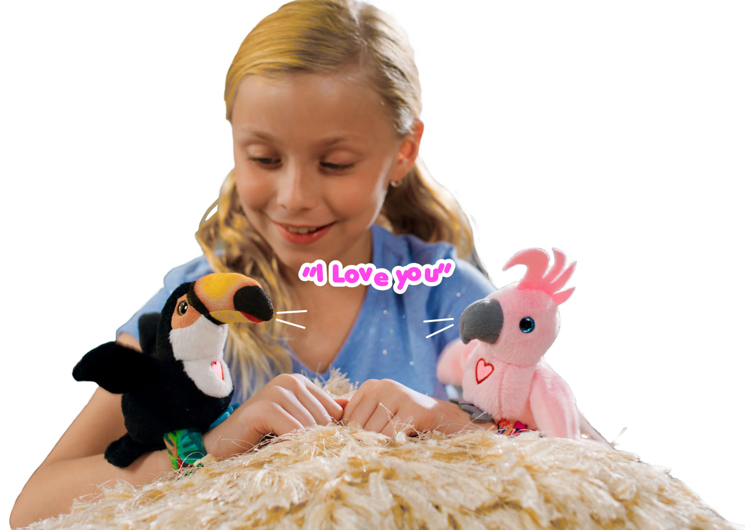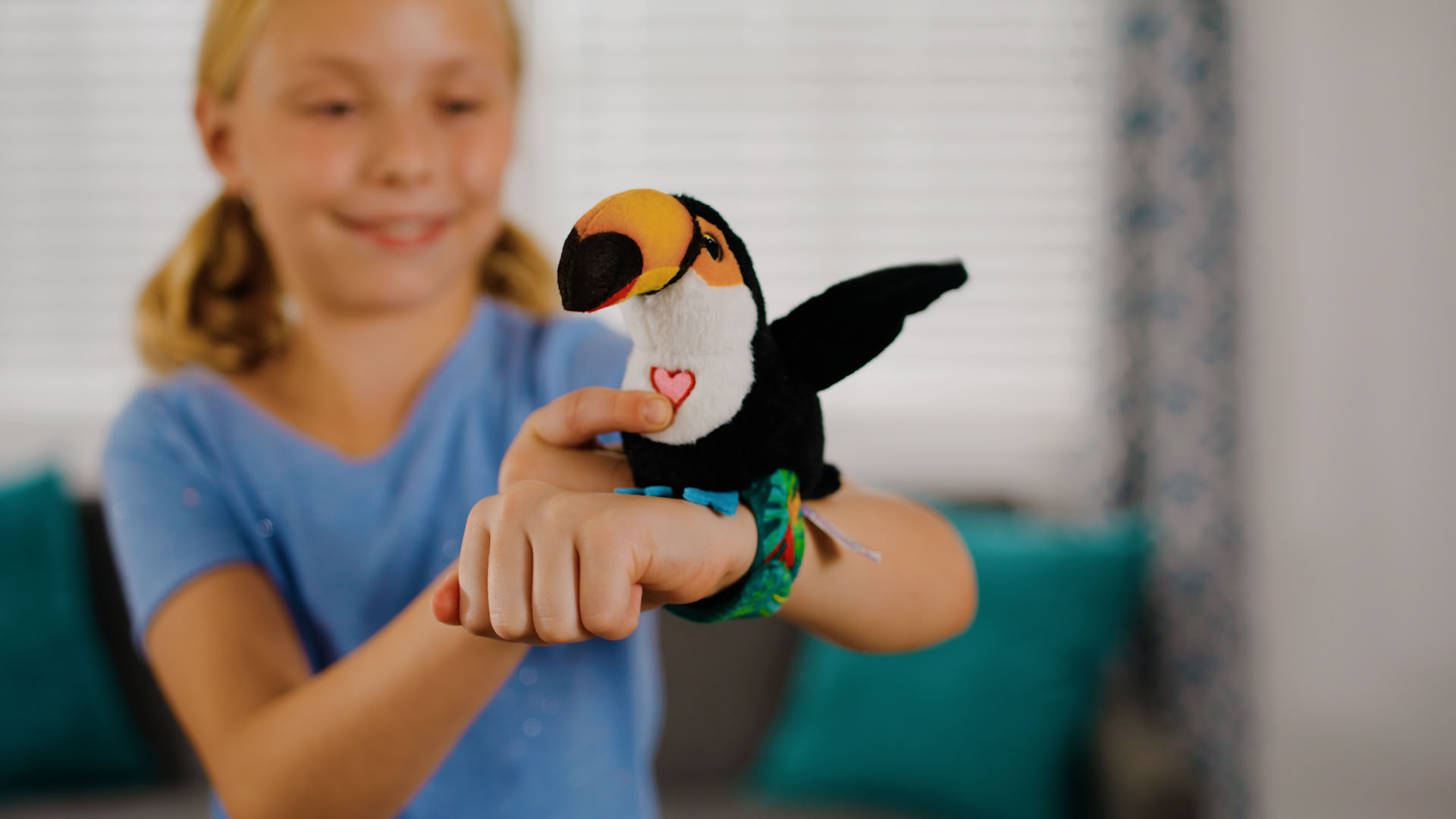 Ptáčka si můžeš připnout na ruku a užít si s ním spoustu zábavy. Opakuje, zpívá ptáčí písničku a mává křídly.