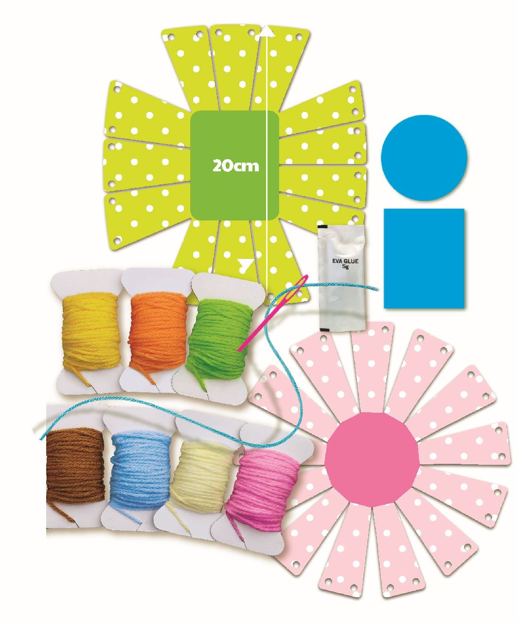 Vyšívání rámeček na pověšení předloha, 2 příze asst 4 druhy v sáčku 15x16x4cm