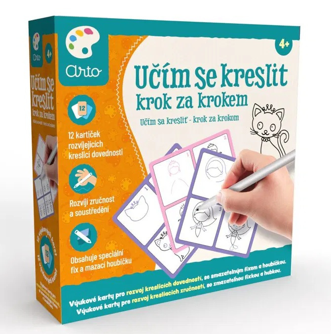Edukativní sada učím se kreslit krok za krokem trénuje šikovnost a soustředěnost dítěte. Uči děti být pečlivý a trpělivý. Sada obsahuje 12 kartiček s obrázky, speciálni fix, který jde smazat a houbičku. Kartičky jsou opakovatelně použitelné.