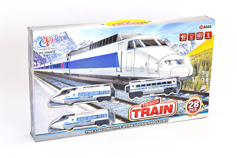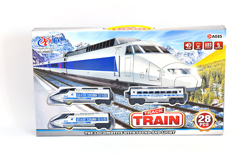 Vlak + 3 vagóny s kolejemi 8ks na baterie se zvukem se světlem v krabici 41x28x6cm