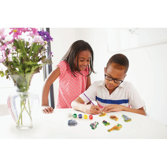 Vytvoř si své vlastní magnety nebo špendlíky pomocí formy, sádrového prášku, barev a štětce, které j
