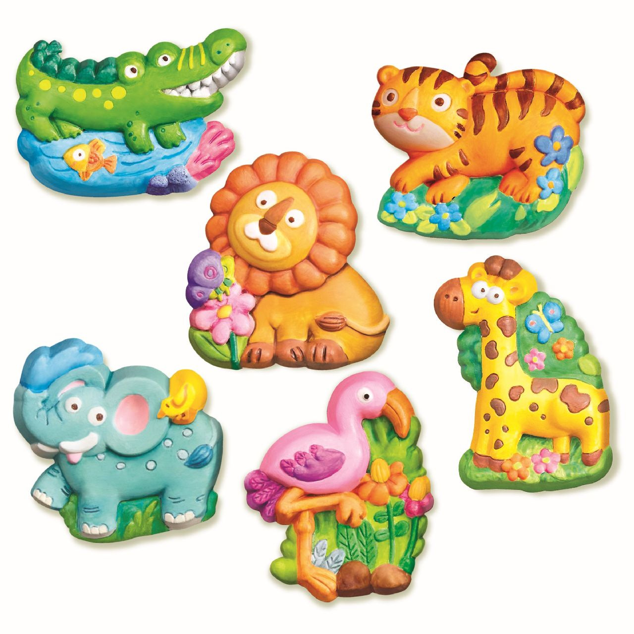 Vytvoř si své vlastní magnety nebo špendlíky pomocí formy, sádrového prášku, barev a štětce, které j