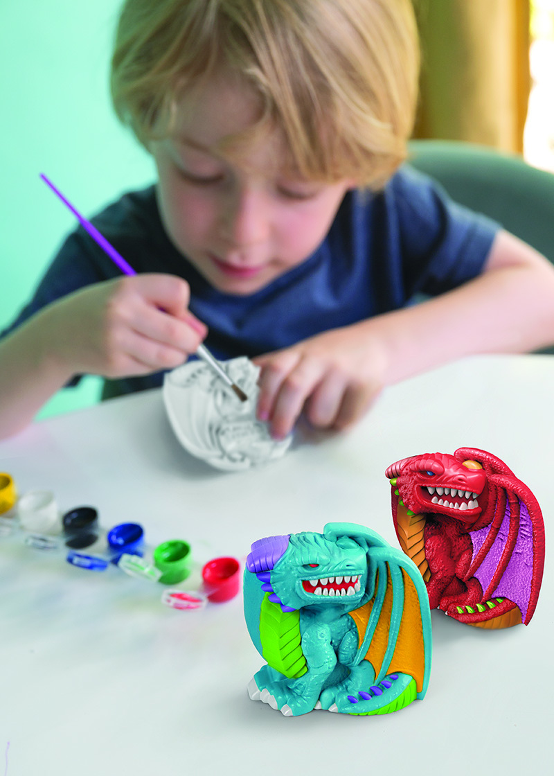 Odlij si ze sádry figurky draků a vybarvi je podle své představivosti. Sada rozvíjí dětskou představ