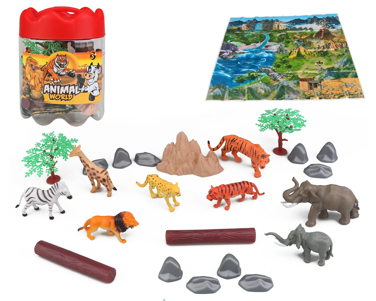 Malá plastová zvířátka, která můžeš potkat na safary. Zvířátka jsou uložena v plastovém přenosném boxu. V balení 21 zvířátek. Balení obsahuje podložka na hraní se zvířátky o velikosti 60x50 cm