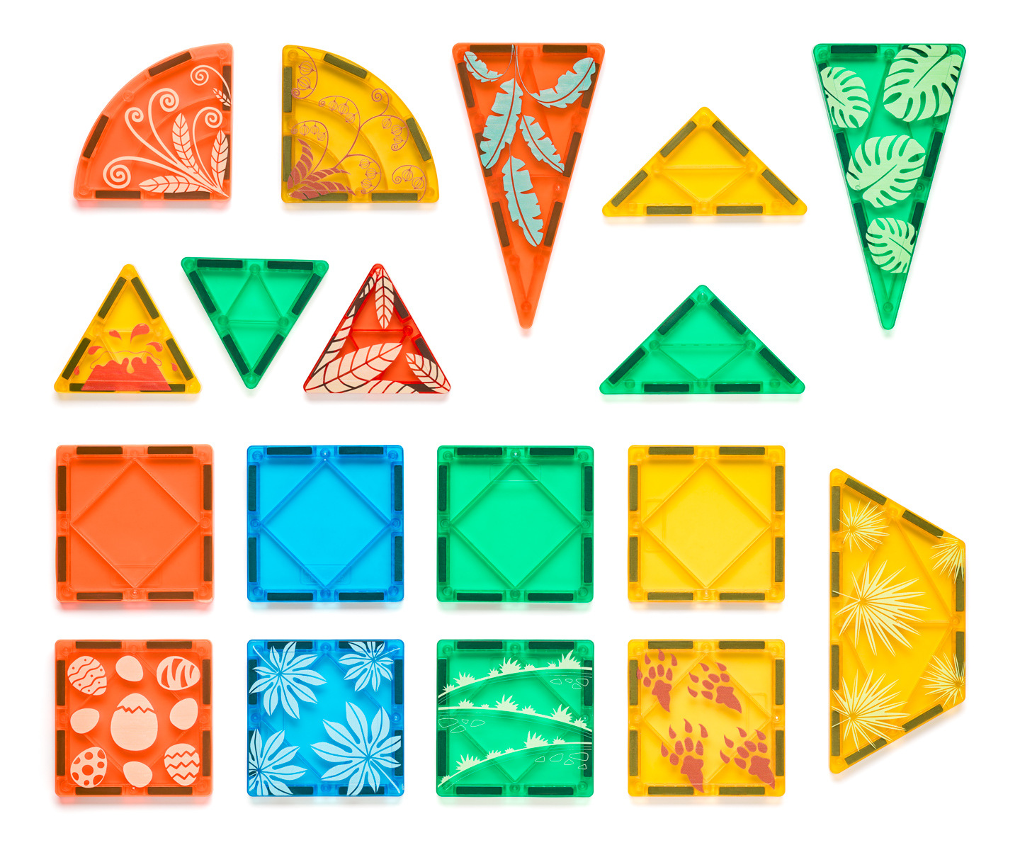 Vydejte se s dětmi do pravěku plného fantazie. Barevná magnetická stavebnice Dinosauři propojuje zábavu, tvořivost a učení v jednom. Pevné magnety zaručují stabilní spojení všech dílků, které jsou navíc zdobeny barevnými, tematickými potisky. Končetiny dinosaurů mají klikací systém, takže se dají snadno polohovat a rozpohybovat. Stavebnice rozvíjí jemnou motoriku, prostorovou představivost i logické myšlení a díky pestrým barvám přinese do hry spoustu radosti a fantazie. Obsah sady - 23 dílků: 8 čtvercových dílků, 7 trojúhelníkových dílků, 2 půlkruhové dílky, 1 čtyřúhelníkový dílek, 5 dinosaurů. Rozměry balení: 33 x 31 x 6 cm. Nevhodné pro děti do 3 let. Věk: 3+