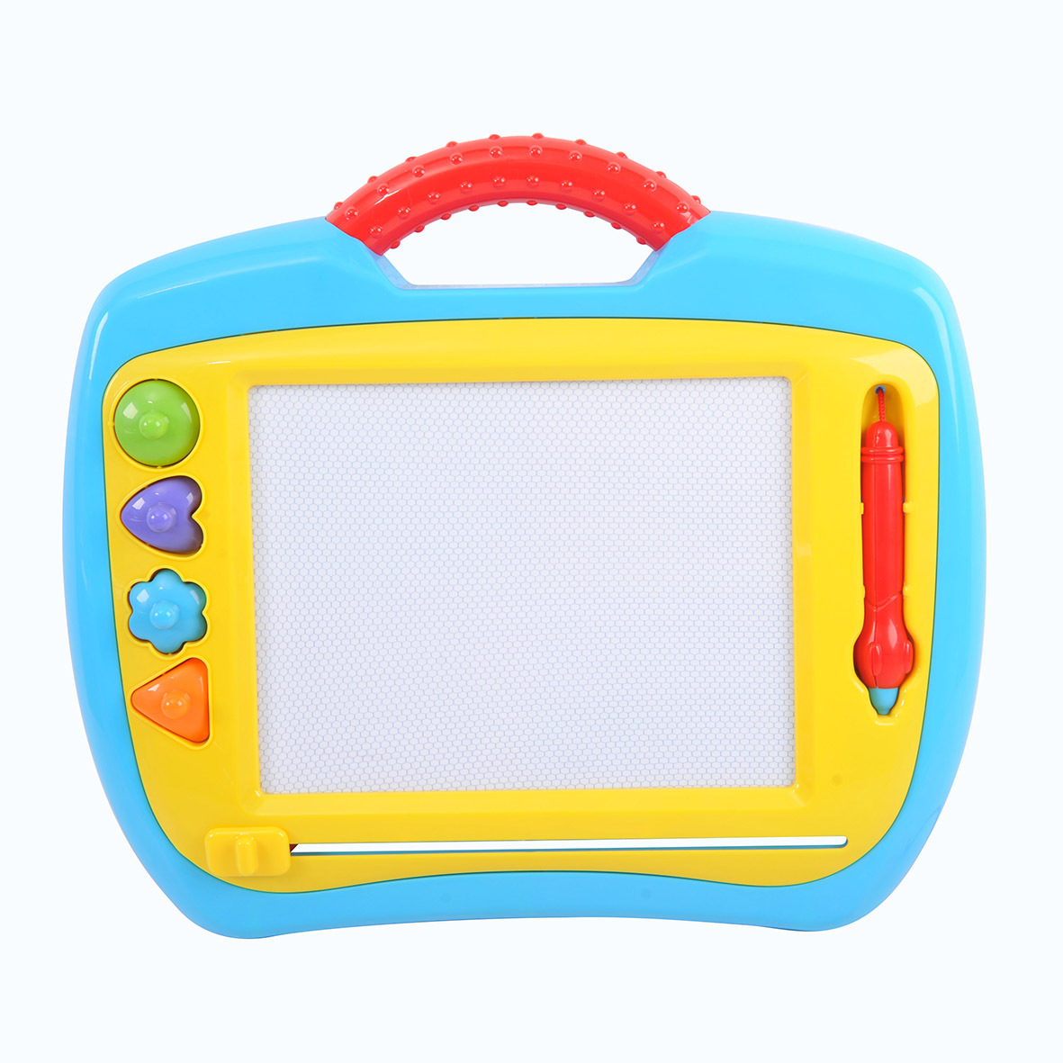 Velká magnetická kreslící tabulka s magnetickou tužkou a 3 razítky. Jedním tahem namalovaný obrázek smažete a můžete začít malovat nový. Vhodné pro děti od 3 let.