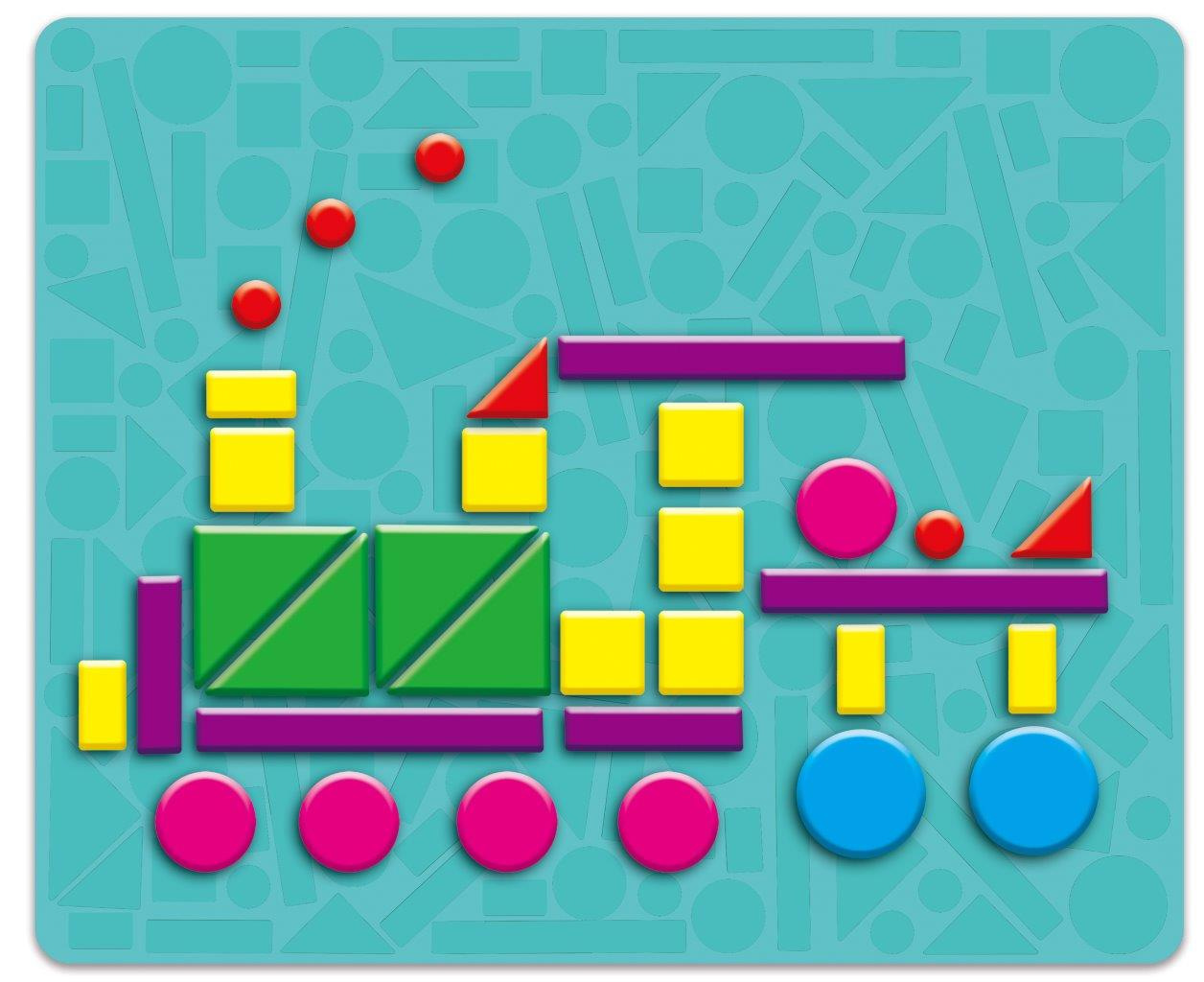 Zábavná aktivita s více než čtyřiceti magnetickými dílky různých tvarů a barev. Sada obsahuje oboustrannou obrázkovou desku, na které mohou děti vytvářet různé vzorce a obrázky. Součástí balení je obrázkový návod. Obsah: Více než 40 různých tvarů s magnetickými vložkami, oboustranná obrázková deska a brožurka s návrhy obrázků Rozměry obrázkové desky: 25 x 21 cm