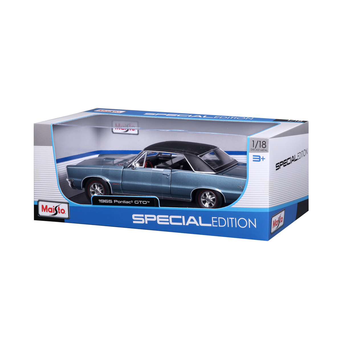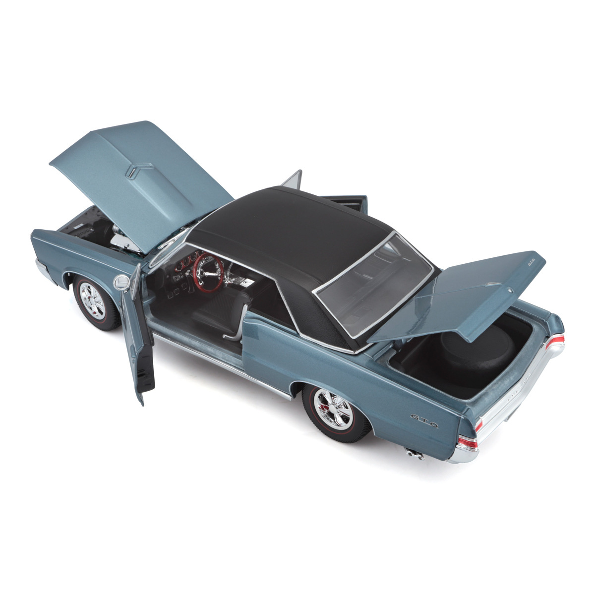 1965 Pontiac GTO, metal modrá. Skvěle propracovaný model překvapí detailním zpracováním interiéru i exteriéru. U modelu lze otevřít dveře, víko motoru a kufru Baleno v krabičce. Rozměry balení: 33x12,4x16,4cm Věk: 3+
