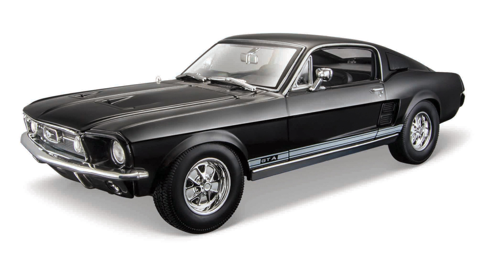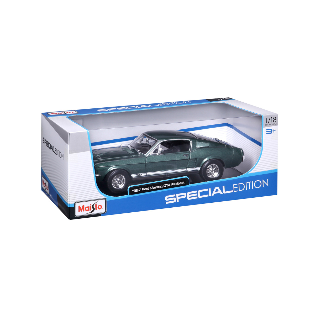 Special Edition 1:18 1967 Ford Mustang GTA Fastback. Modely Special Edition jsou sbírkou krásného designu s vysokým důrazem na přesnost detailů. Modely jsou vyrobeny z litého kovu s plastovými detaily. Většina z modelů Special Edition v měřítku 1:18 má otevírací dveře, kufr nebo kapotu. Navíc disponují odpružením všech čtyř kol, plně funkčním řízením a u některých modelů lze nastavit polohu opěradla. Baleno v krabičce. Nevhodné pro děti do 3 let. Rozměry balení: 12,4 x 33 x 16,4 cm. Věk 3+