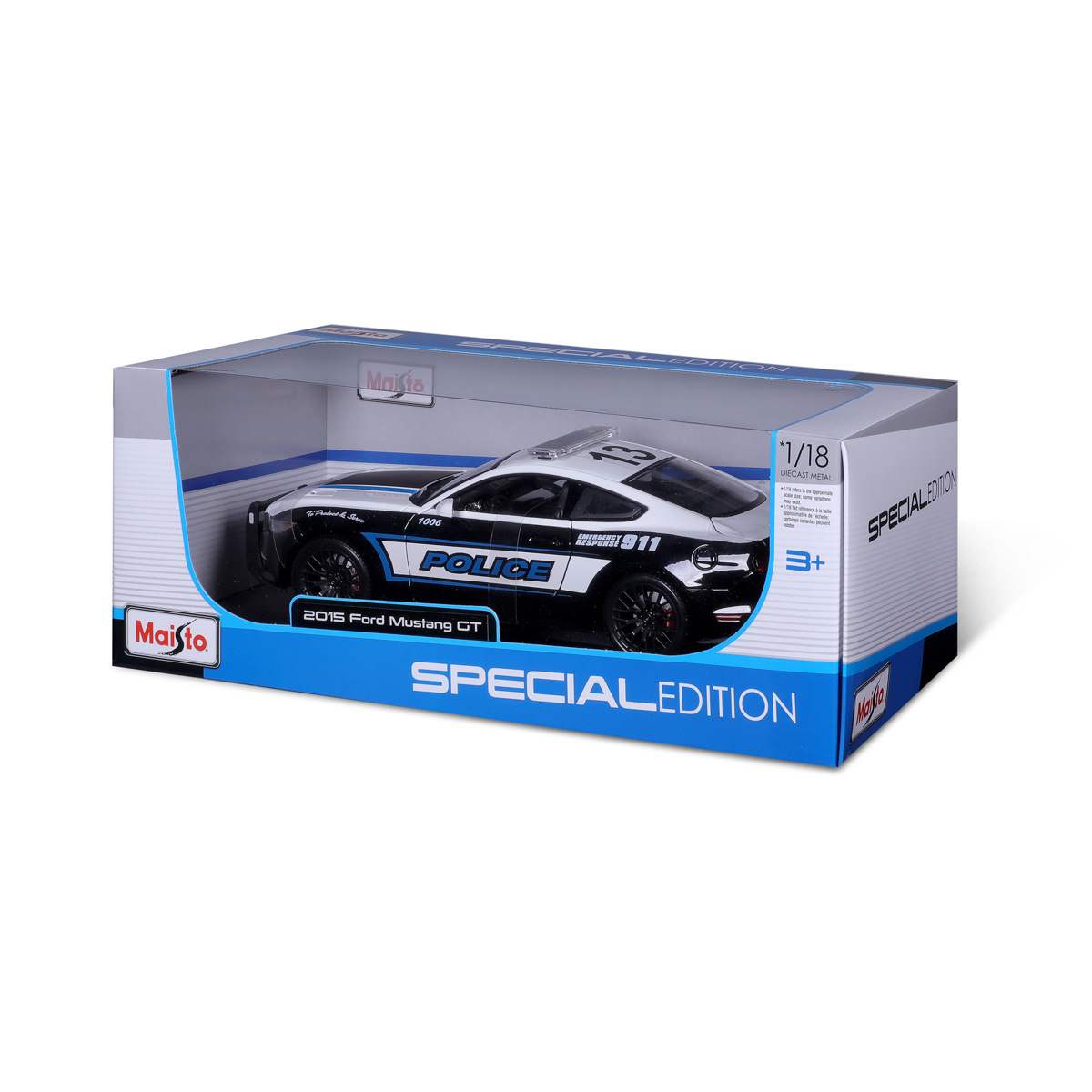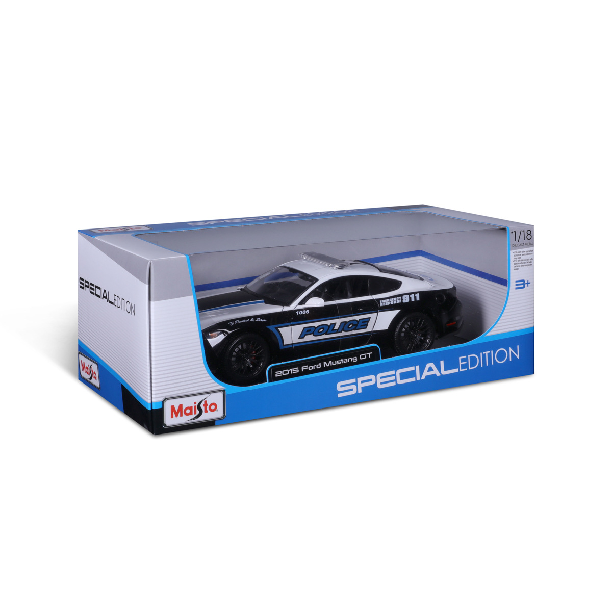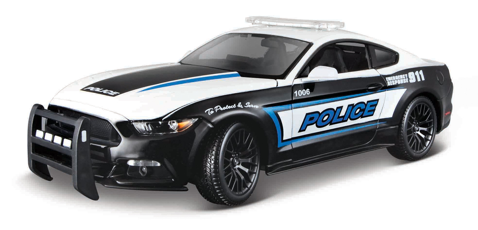 2015 Ford Mustang GT, černo-bílá. Skvěle propracovaný model překvapí detailním zpracováním interiéru i exteriéru. U modelu lze otevřít dveře, víko motoru a kufru. Baleno v krabičce. Rozměry balení: 33x12,4x16,4cm Věk: 3+