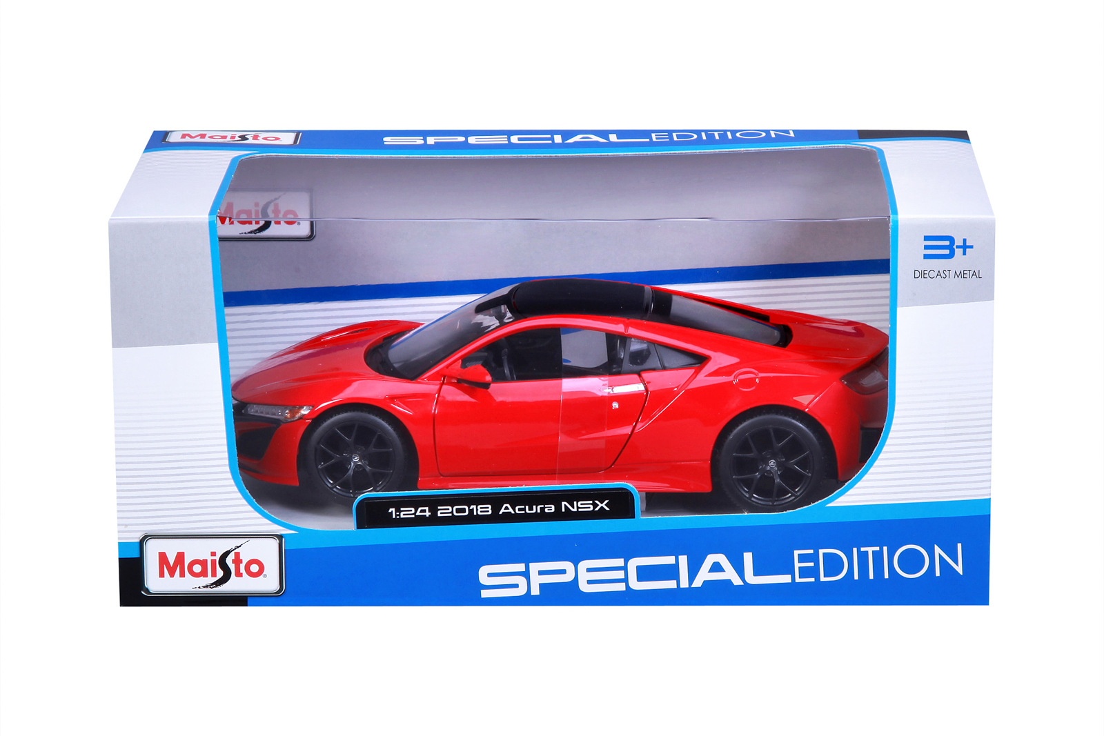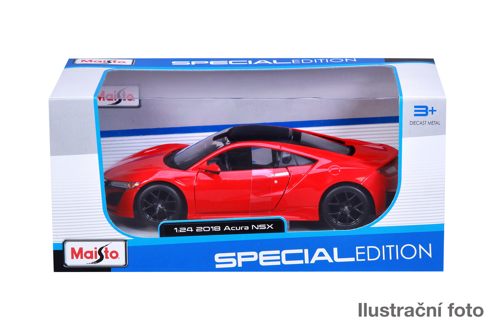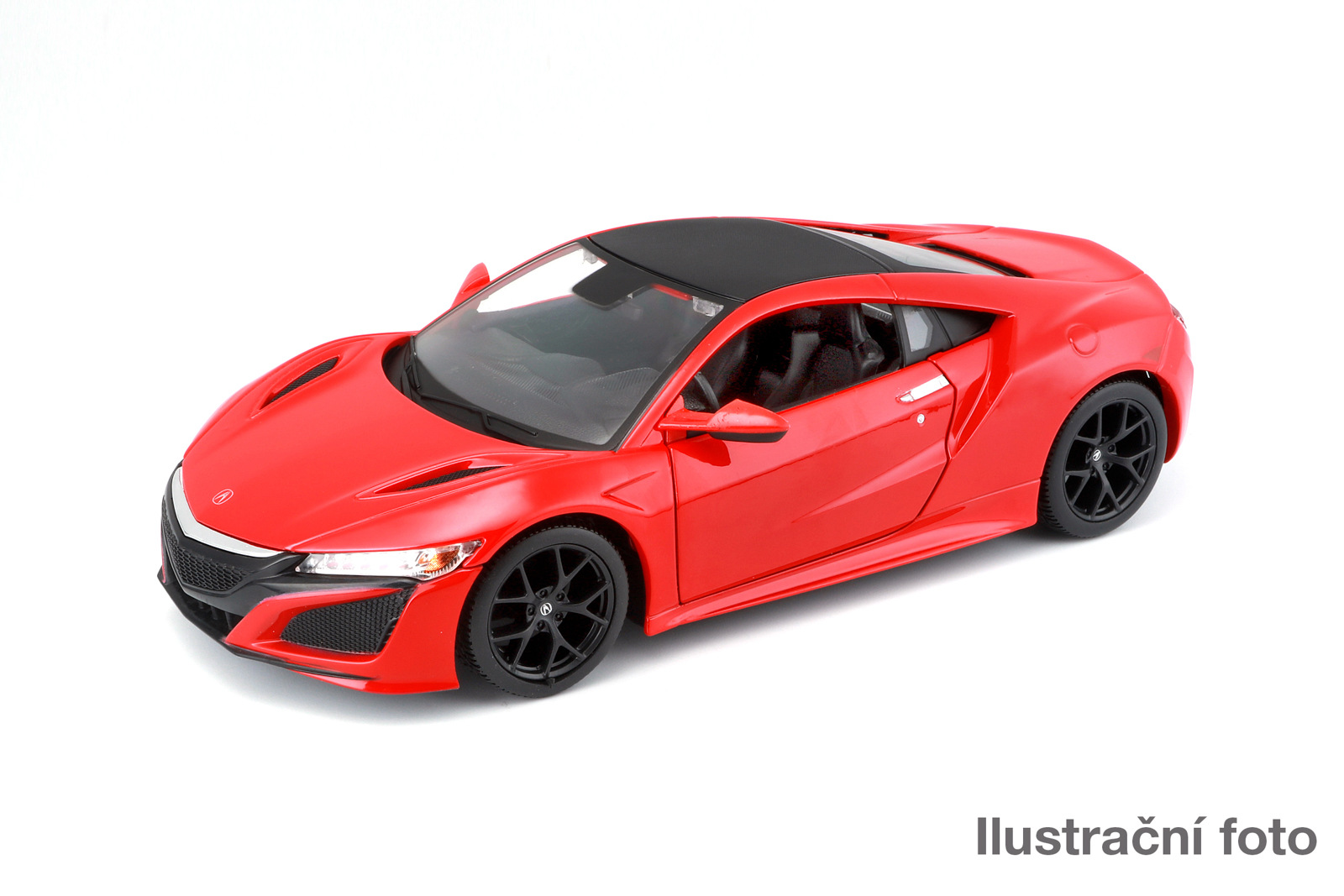2017 Acura NSX. Model sportovního auta značky Acura v měřítku 1:24. Model má velmi dokonalé, detailní provedení jednotlivých částí a kvalitní barevné provedení. Auto má otevíratelné dveře. Kovový model s plastovými doplňky v atraktivní červené barvě. Rozměry balení: 22,8x10,5x11,4cm. Věk: 3+