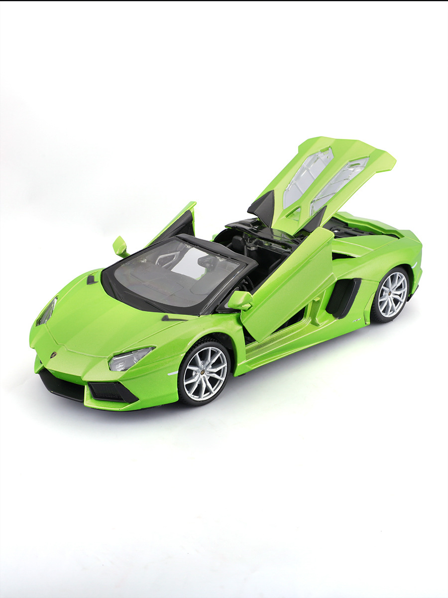 Aventador Roadster. Skládací model auta je v měřítku 1:24. Kovový model auta se skládá podle obrázkového návodu, který je součástí stavebnice. Jednotlivé části se spojují tlakem bez pomoci lepidla. Součástí balení je šroubovák. Balení obsahuje 34 dílů. Model má otvírací dveře. Kovové části jsou natřené netoxickými barvami. Rozměry balení: 22,9 x 16,8 x 10,2cm. Věk: 8+